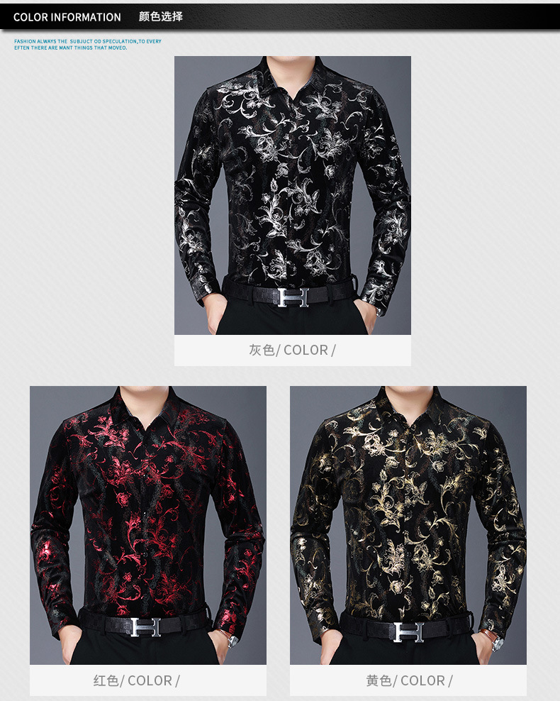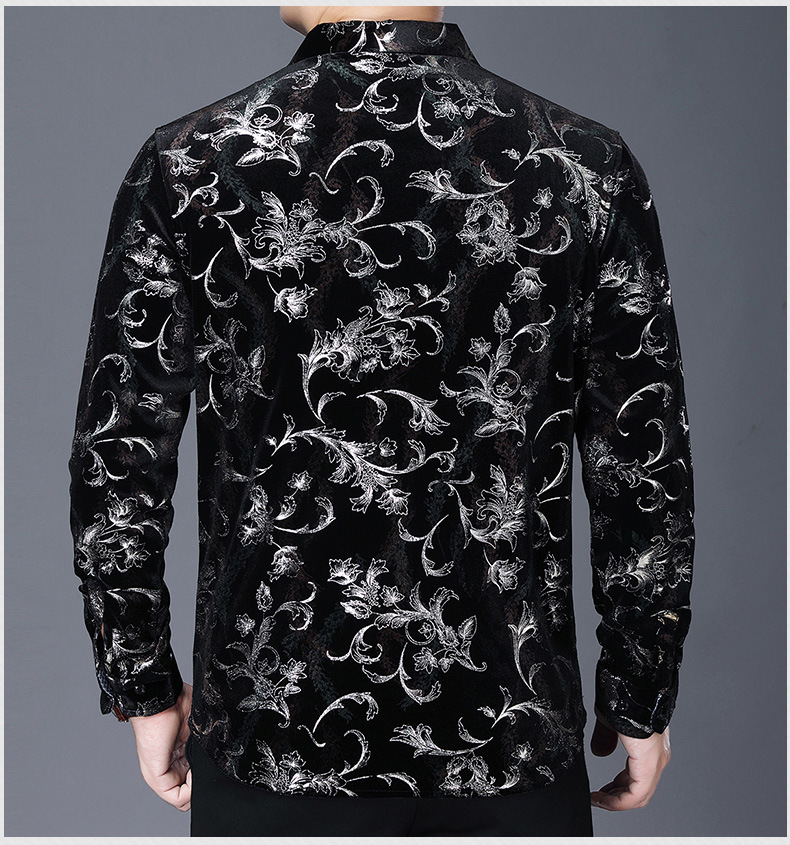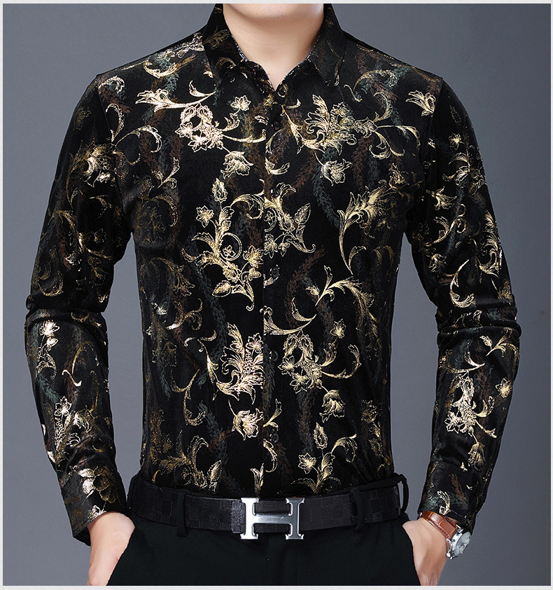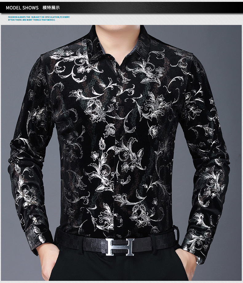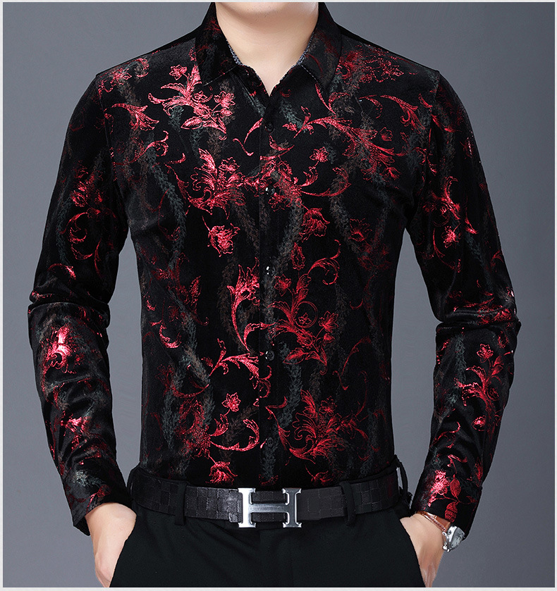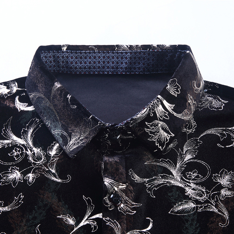 Camisa casual de manga larga para hombres nueva camisa artística de flores de solapa otoño Camisa de hombre de mediana edad de marca de moda transfronteriza europea y americana para hombres