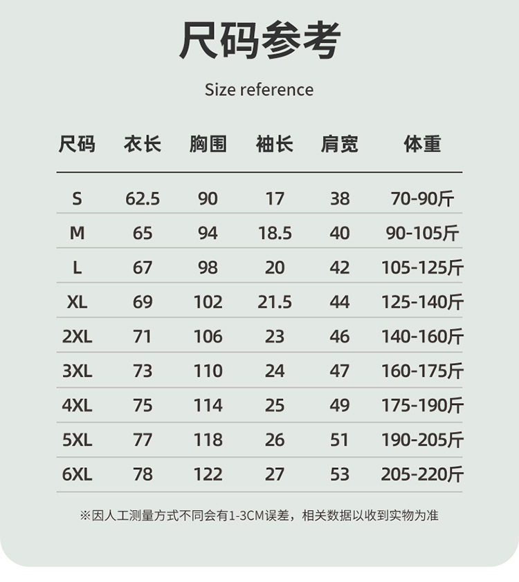 | Talla | S,M,L,XL,XXL,XXXL,4XL,5XL,6XL |