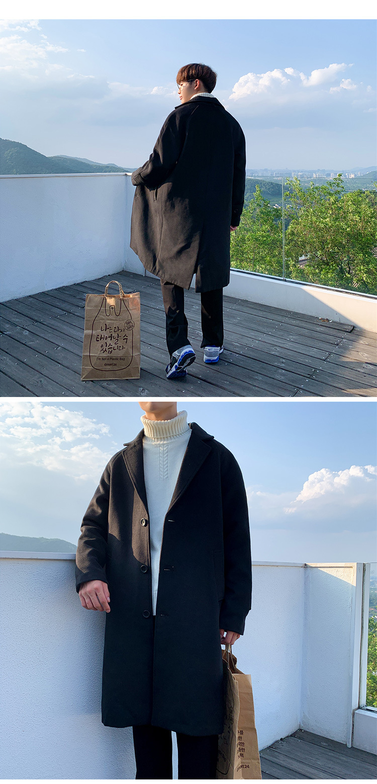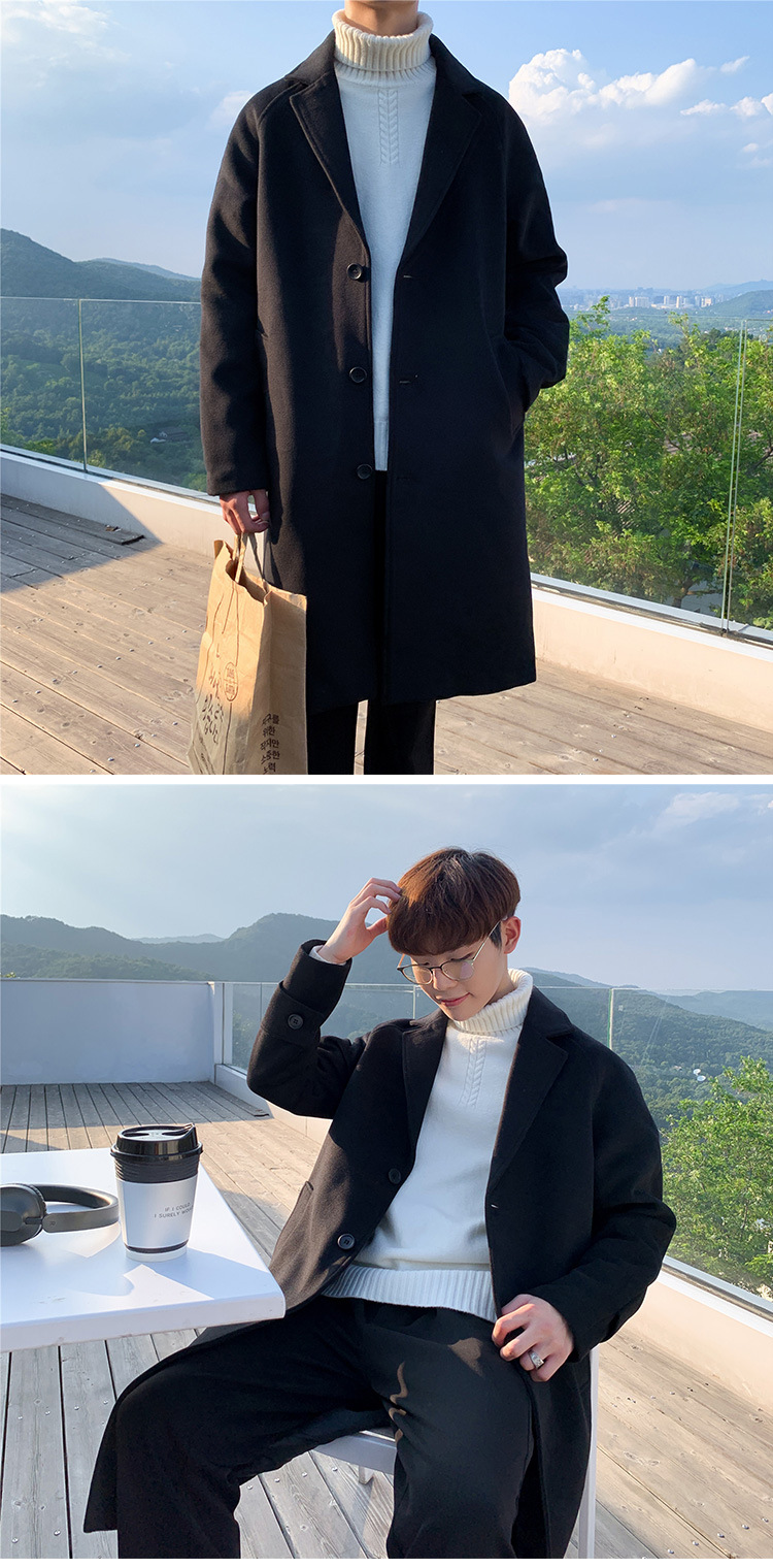 Abrigo de lana de los hombres de media longitud de estilo coreano sobre la rodilla cazadora suelta más tamaño estudiante de moda abrigo de lana de estilo británico