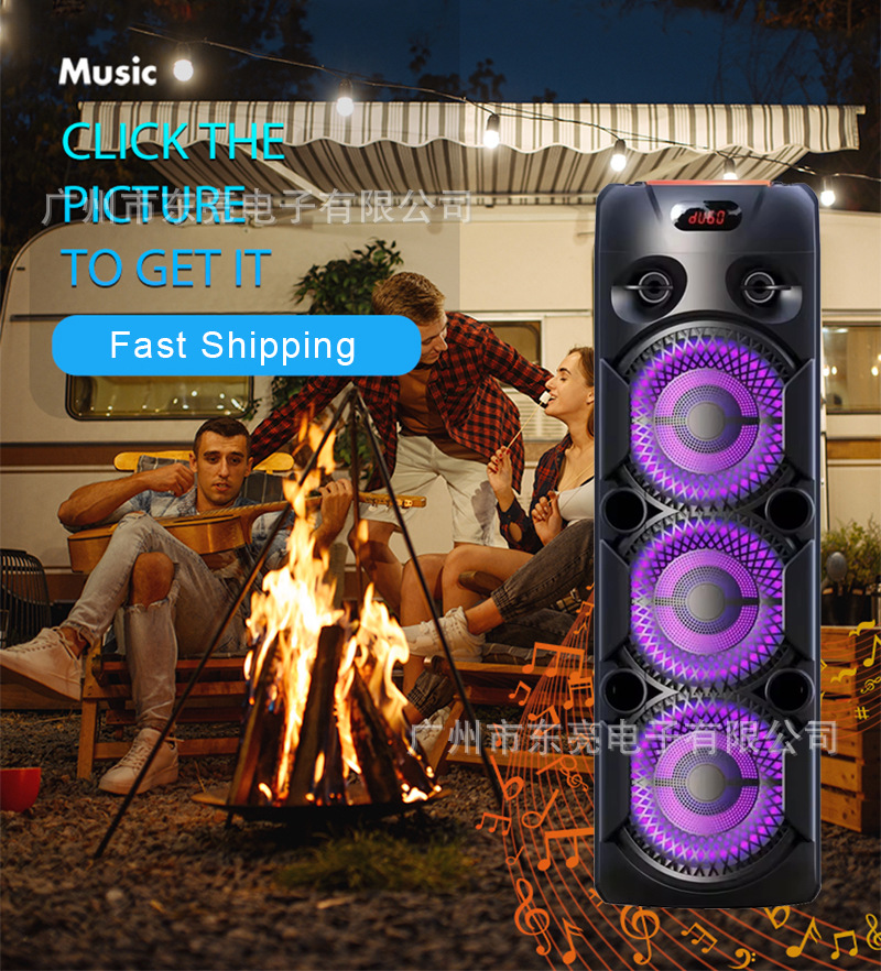 东南亚菲律宾爆款三个喇叭8寸户外广场舞音响带无线K歌麦克风音箱