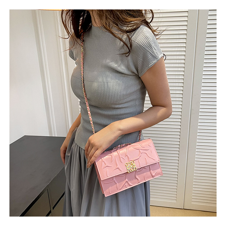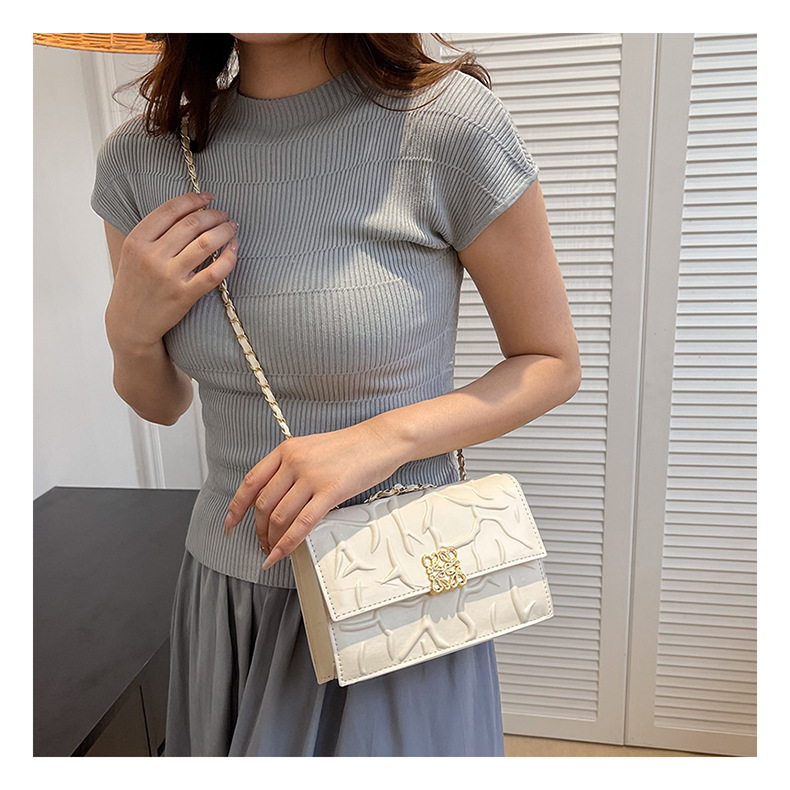 2023 verano textura pequeña bolsa cuadrada Bolsa de mensajero de hombro de cadena elegante de las mujeres de moda de este año