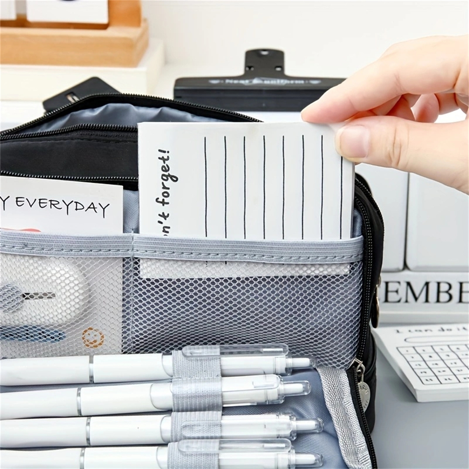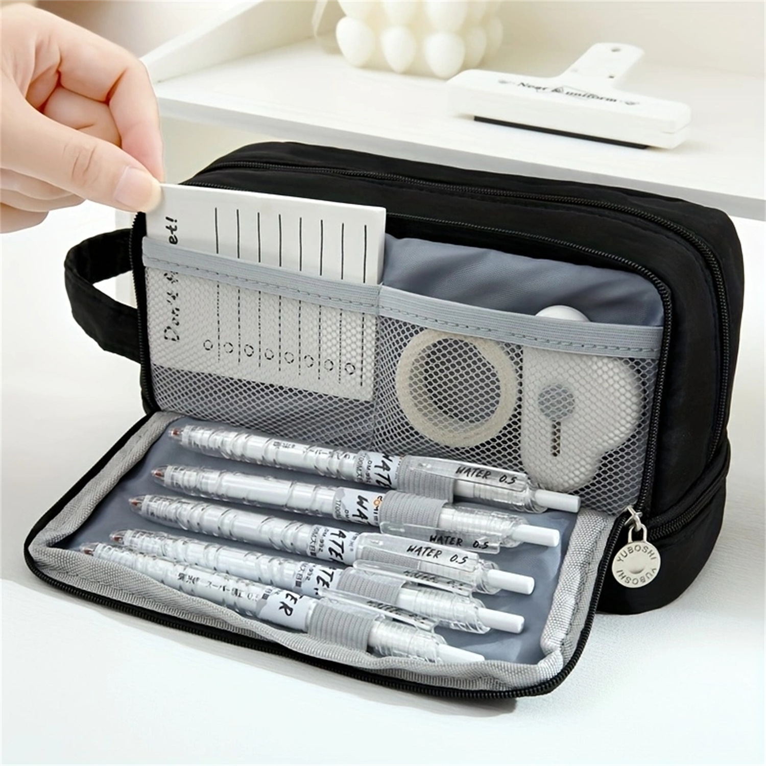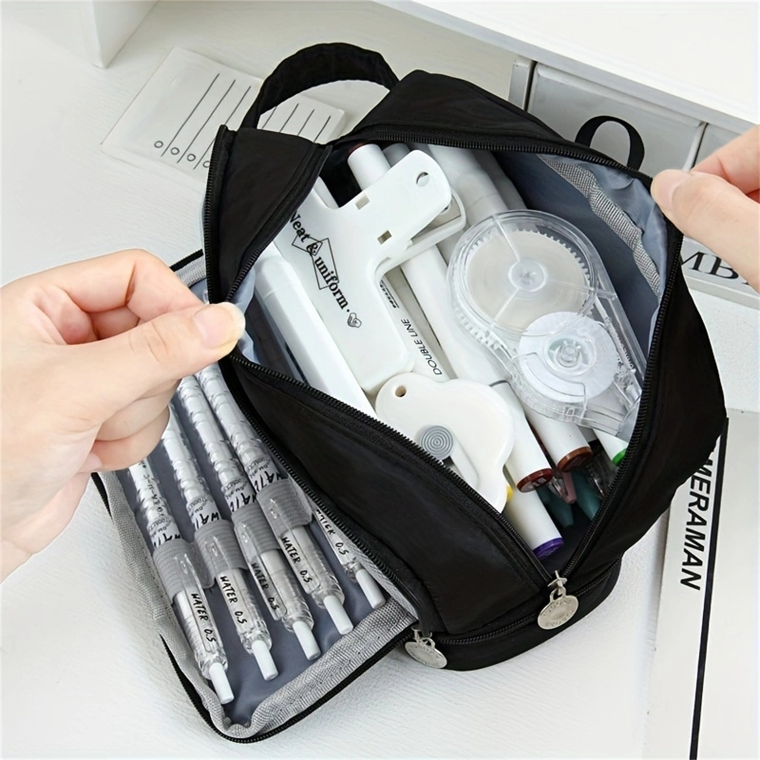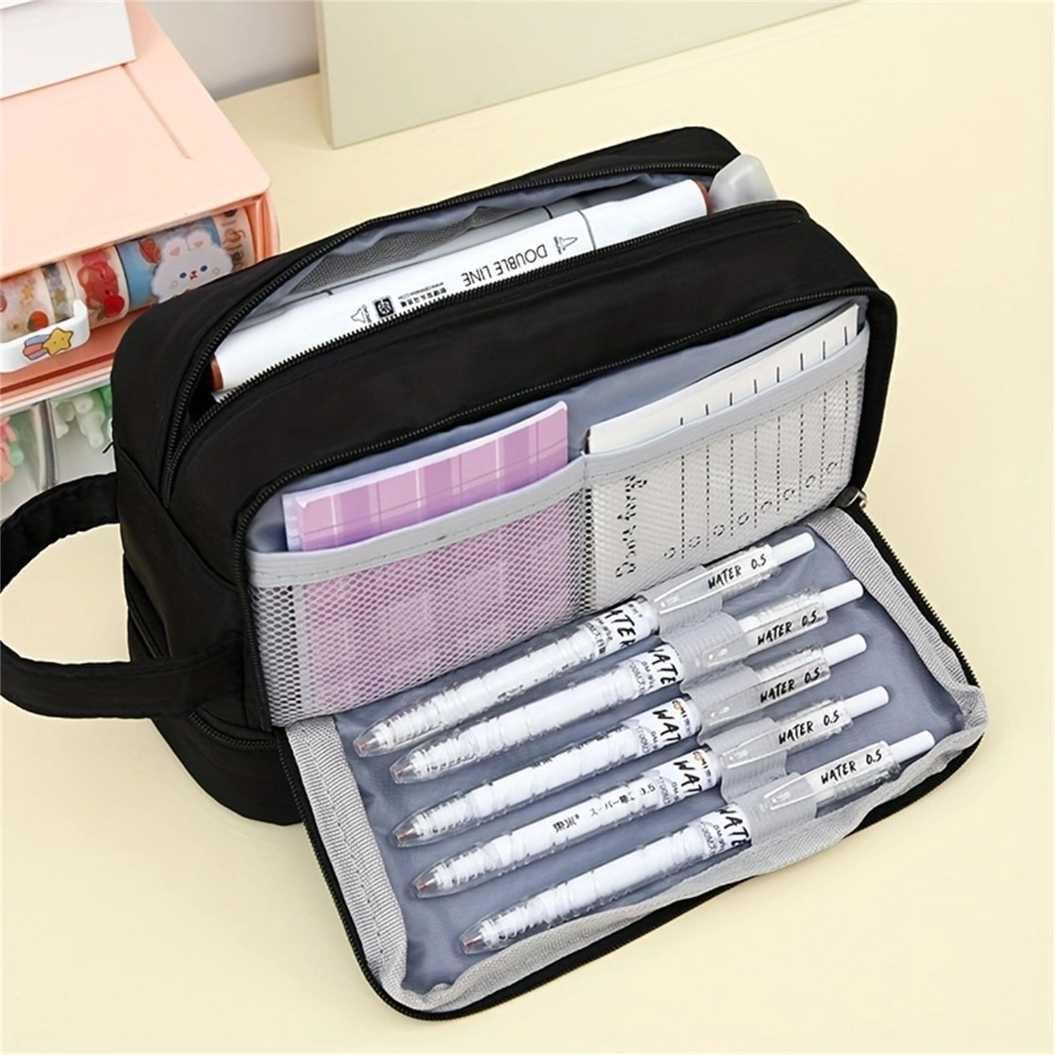 Caja de lápices de estudiante de secundaria de gran capacidad transfronteriza caja de lápices de doble capa caja de lápices multifuncional simple caja de lápices caja de papelería al por mayor
