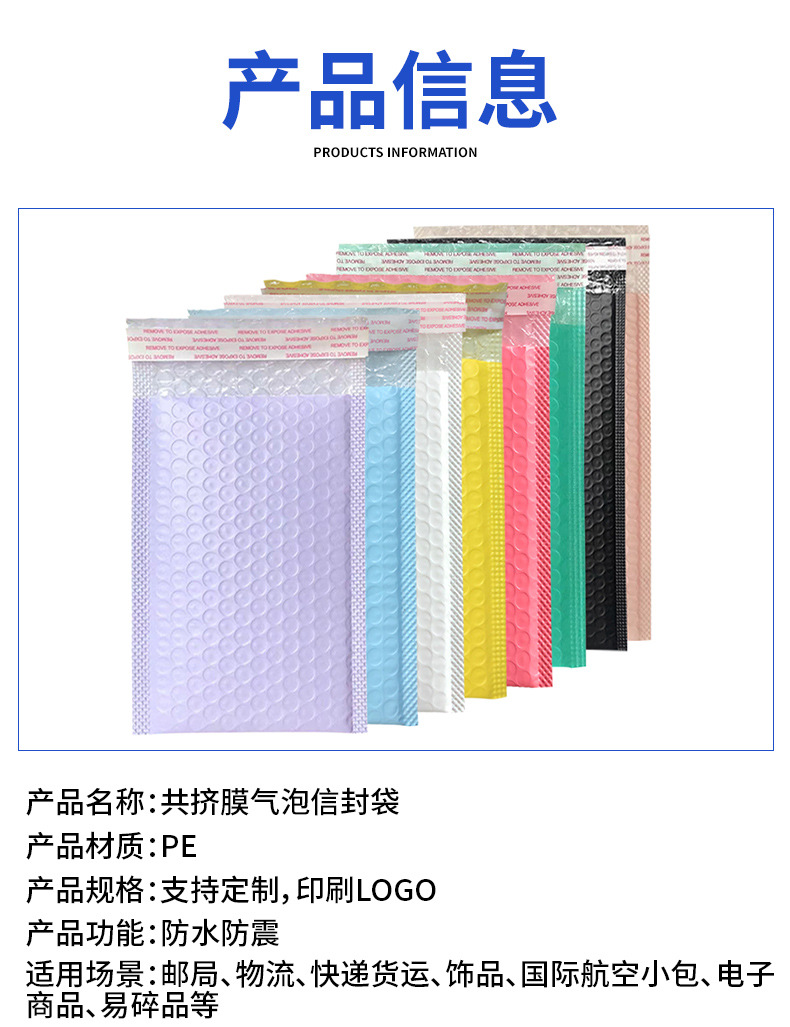 Bolsa de burbujas de película coextrudida personalizada pequeña impresión de logotipo de lotes bolsas de burbujas antichoque engrosado bolsa expreso personalizada