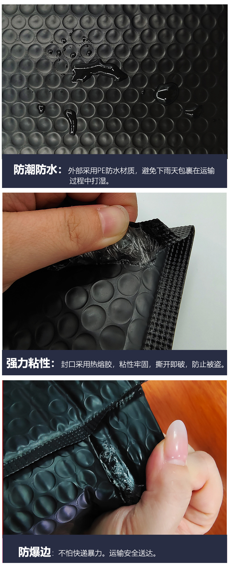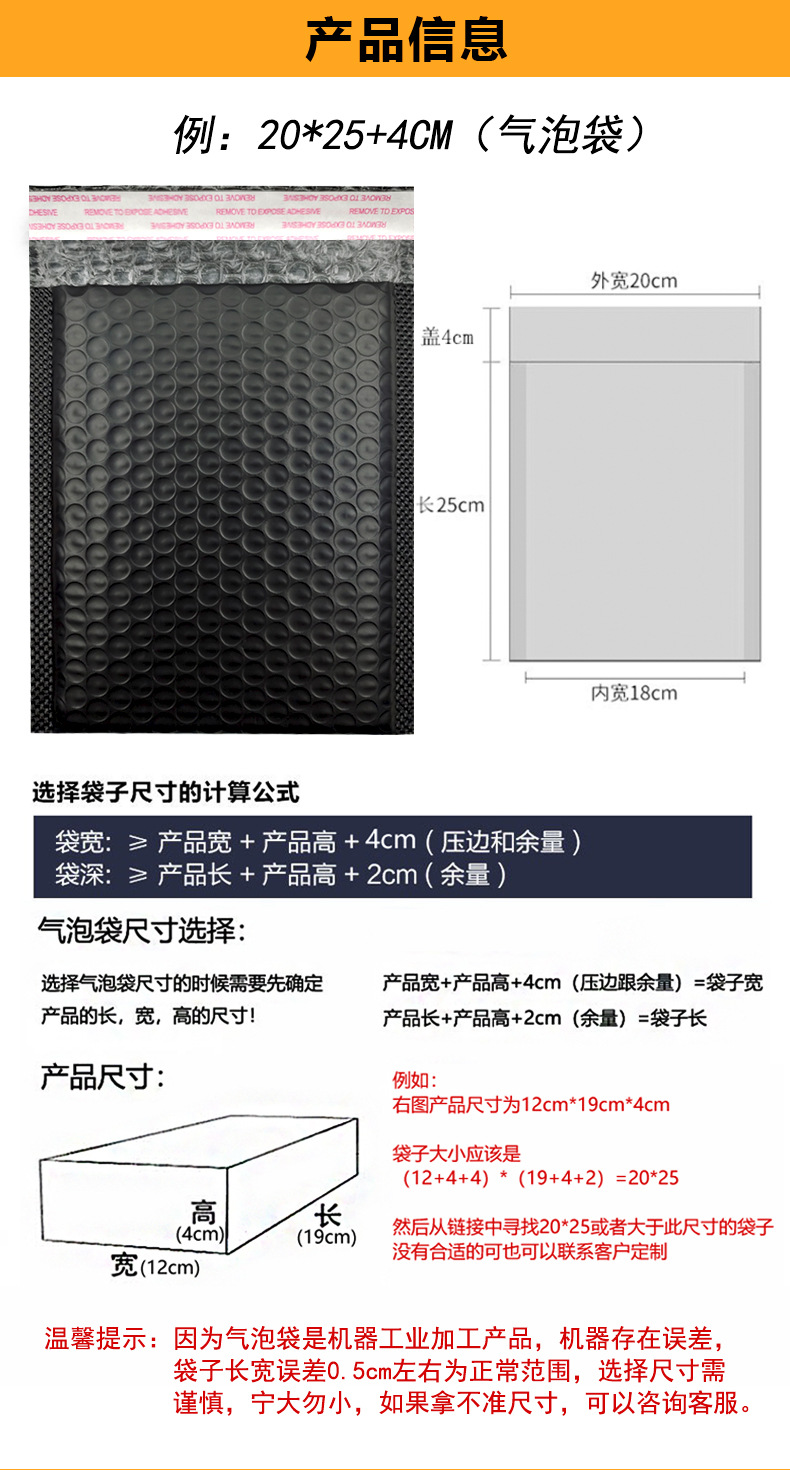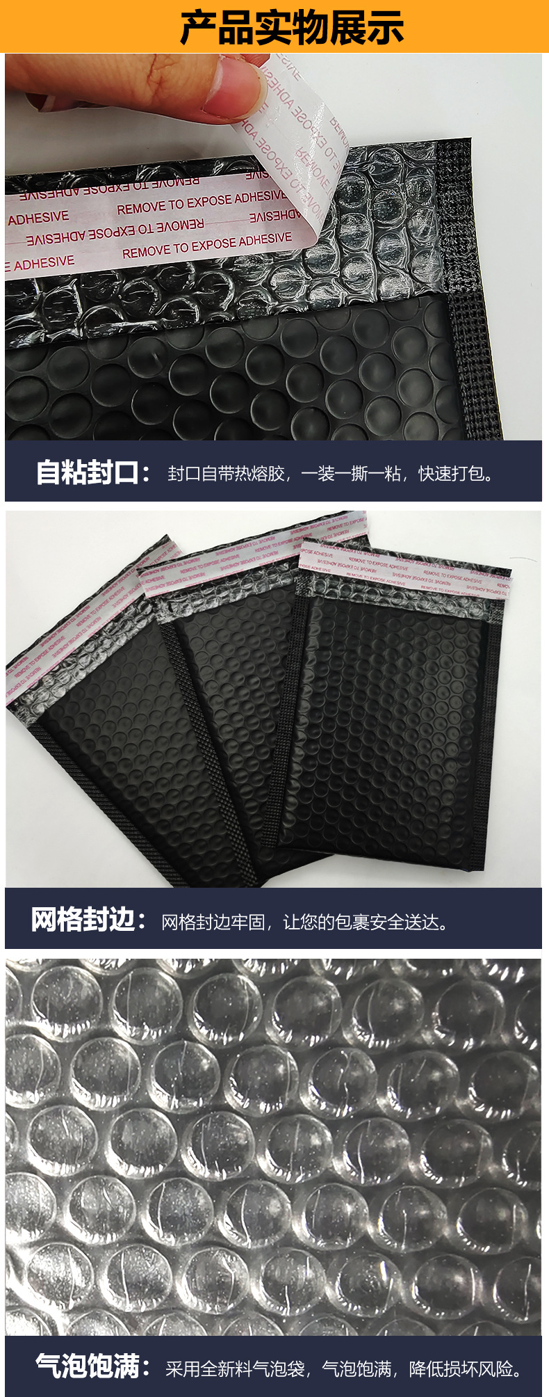 Bolsa de burbuja negra espesada película coextruida Lote pequeño al por mayor bolsa autoadhesiva para ropa bolsa de espuma de embalaje Bolsa de burbuja