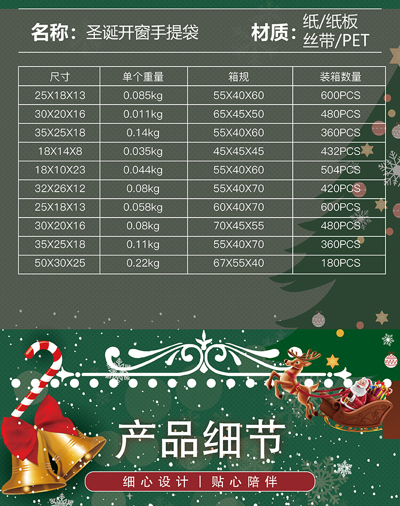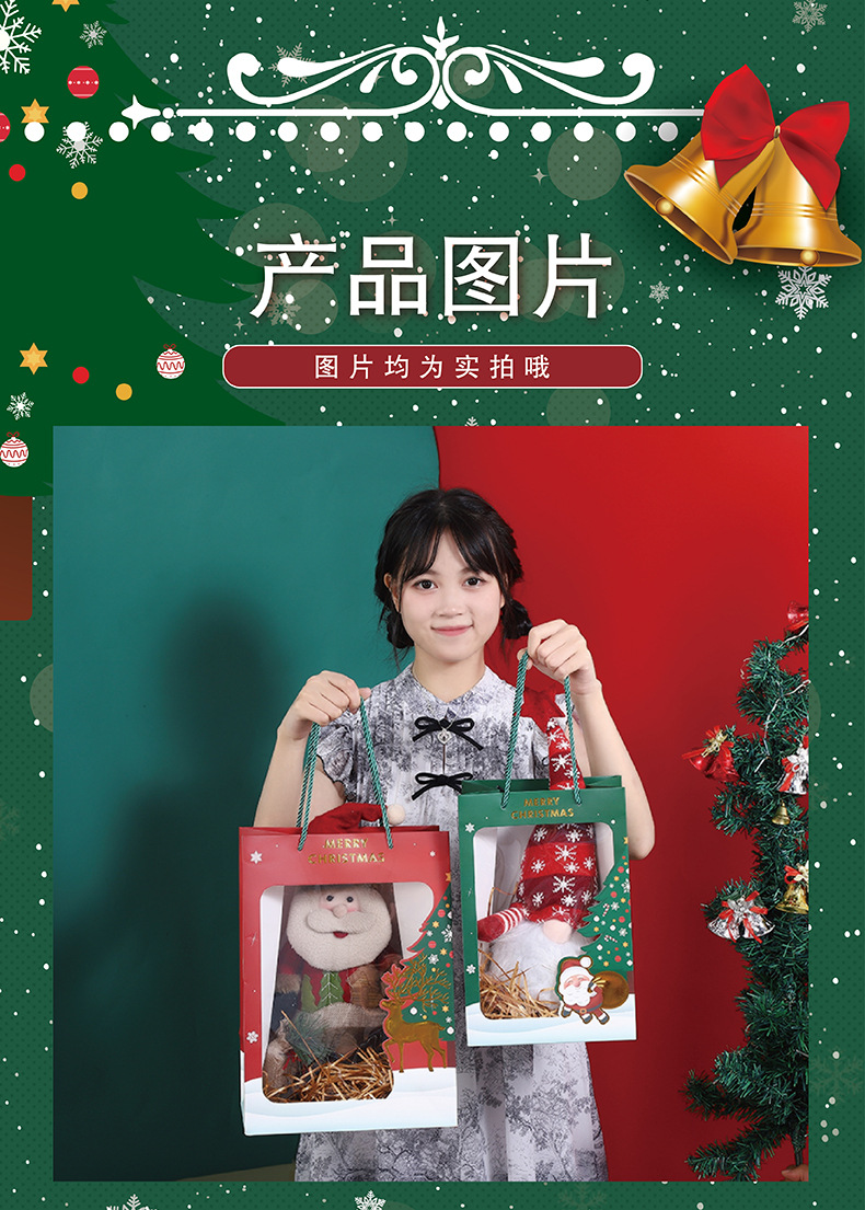 | Modelo de especificación | Alce rojo; 18*13*25,Alce rojo; 20*16*30,Alce rojo; 25*18*35,Verde Santa Claus; 18*13*25,Verde Santa Claus; 20*16*30,Verde Santa Claus; 25*18*35,Caja de embalaje de manzana roja; 10*10,Caja de embalaje de Apple verde; 10*10 |