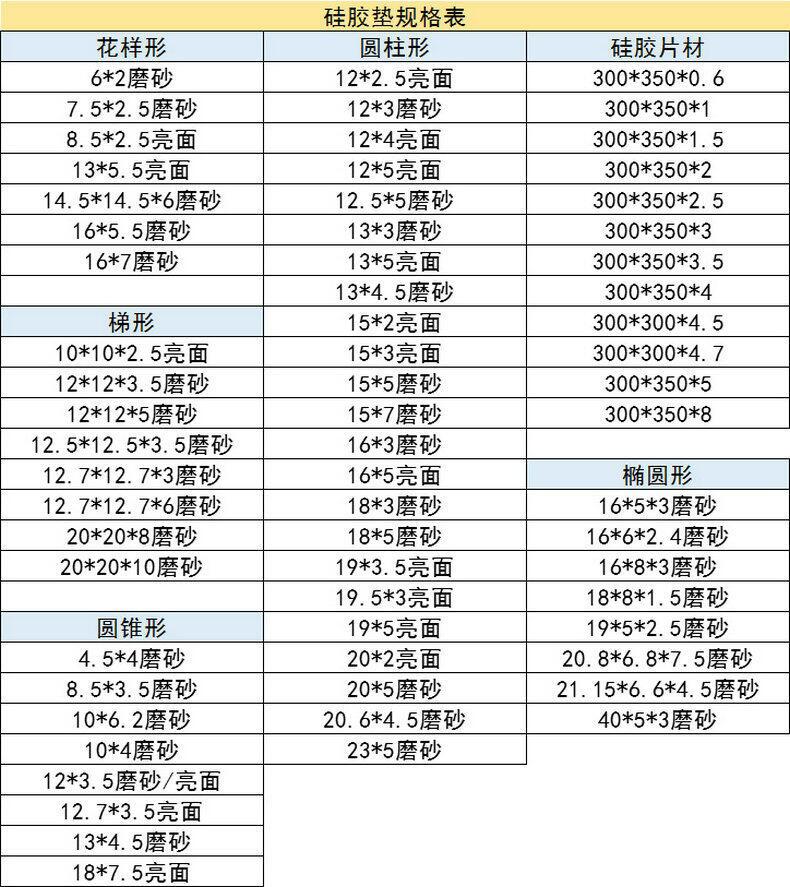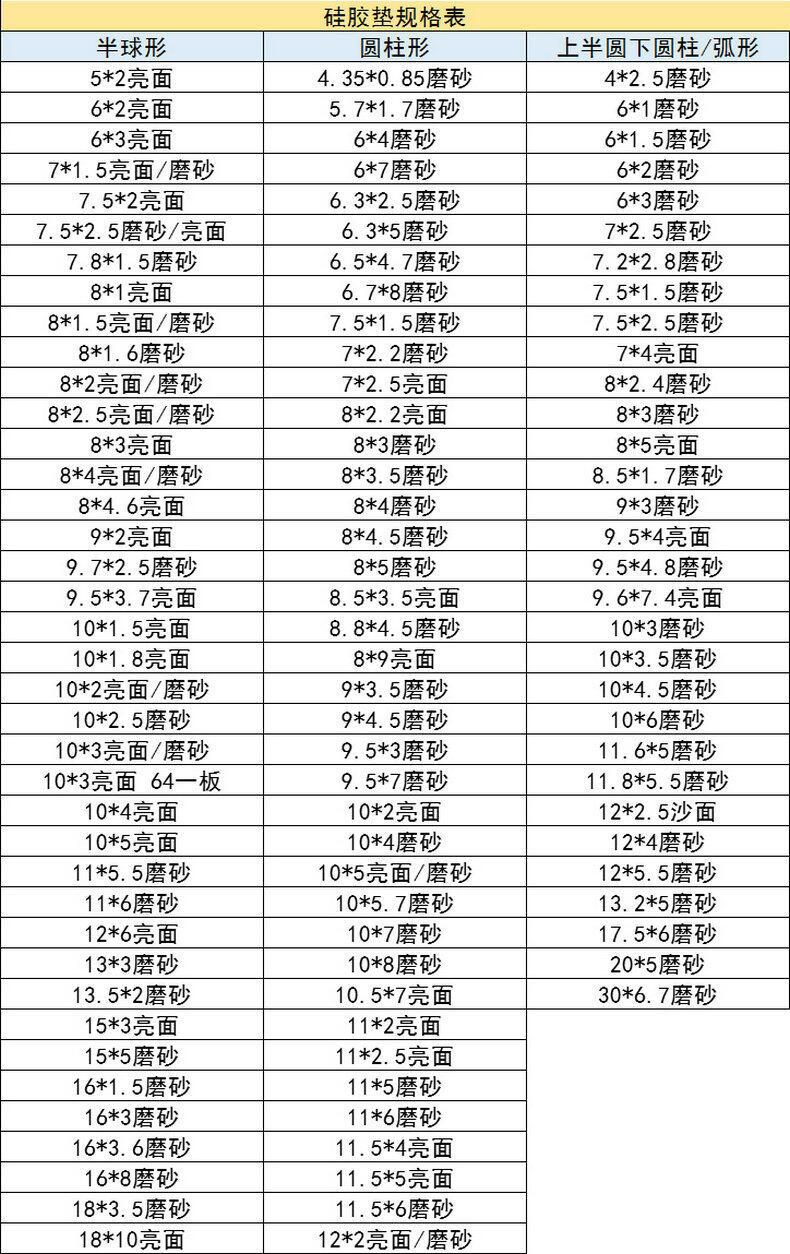 | Modelo de especificación | Hemisferio de 40*8mm (1 cápsula para el modelo premium); silicona; blanco,6*2mm hemisferio (100 granos); silicona; transparente,8*2mm hemisferio (100 granos); silicona; transparente,8*2,5mm hemisferio (100 granos); silicona; transparente,10*2mm hemisferio (100 granos); silicona; transparente,10*3mm hemisferio (100 granos); silicona; transparente,12*4mm cilindro (64 granos); silicona; transparente,13*5.5mm patrón (50 cápsulas); silicona; transparente,16*8mm hemisferio (36 cápsulas para modelos más grandes); silicona; transparente,20*20*8mm trapezoidal (36 granos); silicona; blanco |