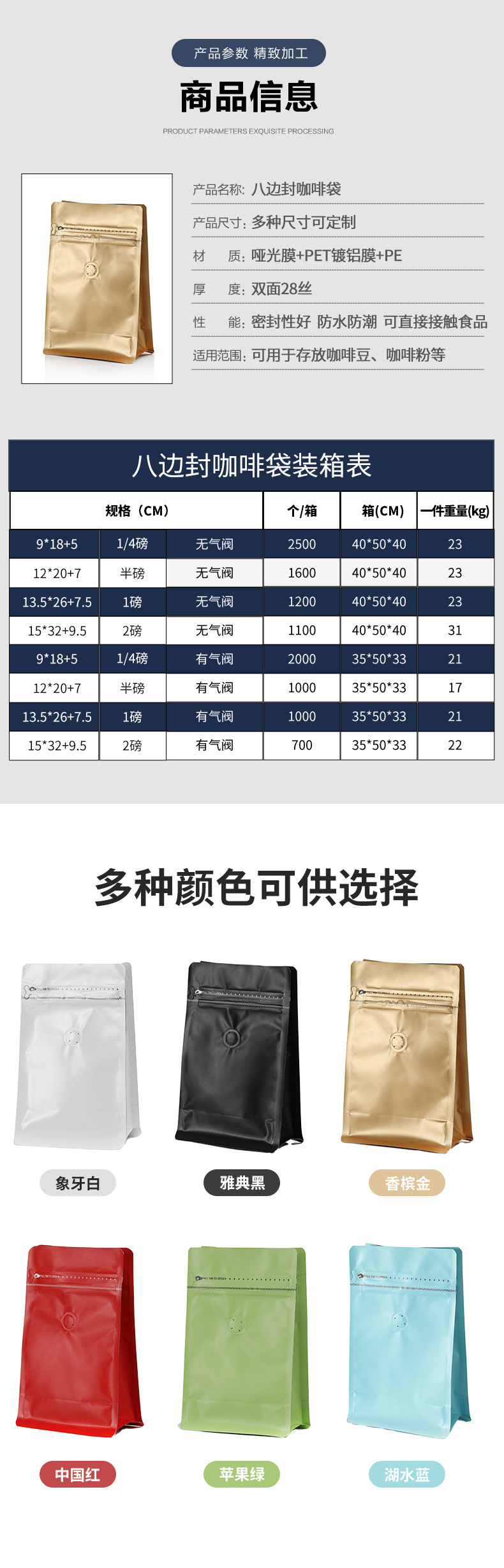 | Modelo de especificación | [Sin válvula de aire] Blanco 9*18 5cm,[Con válvula de aire] Blanco 9*18 5cm,[Sin válvula de aire] Blanco 13*20 7cm,[Con válvula de aire] Blanco 13*20 7cm,[Con válvula de aire] Blanco negro 13*20 7cm,[Con válvula de aire] blanco dorado 13*20 7cm,[Con válvula de aire] Papel kraft 13*20 7cm,[Sin válvula de aire] blanco 13,5*26 7,5 cm,[Con válvula de aire] Blanco 13,5*26 7,5 cm,[Con válvula de aire] Blanco negro 13,5*26 7,5 cm,[Con válvula de aire] oro blanco 13,5*26 7,5 cm,[Con válvula de aire] Papel kraft 13,5*26 7,5 cm,[Sin válvula de aire] Blanco 15*32,5 9,5 cm,[Con válvula de aire] Blanco 15*32,5 9,5 cm,[Sin válvula de aire] Negro 9*18 5cm,[Con válvula de aire] Negro 9*18 5cm,[Sin válvula de aire] Negro 13*20 7cm,[Con válvula de aire] Negro 13*20 7cm,[Sin válvula de aire] negro 13,5*26 7,5 cm,[Con válvula de aire] Negro 13,5*26 7,5 cm,[Sin válvula de aire] Negro 15*32,5 9,5 cm,[Con válvula de aire] Negro 15*32,5 9,5 cm,[Sin válvula de aire] dorado 9*18 5cm,[Con válvula de aire] dorado 9*18 5cm,[Sin válvula de aire] dorado 13*20 7cm,[Con válvula de aire] dorado 13*20 7cm,[Sin válvula de aire] oro 13,5*26 7,5 cm,[Con válvula de aire] oro 13,5*26 7,5 cm,[Sin válvula de aire] dorado 15*32,5 9,5 cm,[Con válvula de aire] dorado 15*32,5 9,5 cm,[Sin válvula de aire] Rojo 9*18 5cm,[Con válvula de aire] Rojo 9*18 5cm,[Sin válvula de aire] rojo 13*20 7cm,[Con válvula de aire] Rojo 13*20 7cm,[Sin válvula de aire] rojo 13,5*26 7,5 cm,[Con válvula de aire] Rojo 13,5*26 7,5 cm,[Sin válvula de aire] Rojo 15*32,5 9,5 cm,[Con válvula de aire] Rojo 15*32,5 9,5 cm,[Sin válvula de aire] Verde 9*18 5cm,[Con válvula de aire] Verde 9*18 5cm,[Sin válvula de aire] Verde 13*20 7cm,[Con válvula de aire] Verde 13*20 7cm,[Sin válvula de aire] Verde 13,5*26 7,5 cm,[Con válvula de aire] Verde 13,5*26 7,5 cm,[Sin válvula de aire] Verde 15*32,5 9,5 cm,[Con válvula de aire] Verde 15*32,5 9,5 cm,[Sin válvula de aire] Azul 9*18 5cm,[Con válvula de aire] Azul 9*18 5cm,[Sin válvula de aire] Azul 13*20 7cm,[Con válvula de aire] Azul 13*20 7cm,[Sin válvula de aire] Azul 13,5*26 7,5 cm,[Con válvula de aire] Azul 13,5*26 7,5 cm,[Sin válvula de aire] Azul 15*32,5 9,5 cm,[Con válvula de aire] Azul 15*32,5 9,5 cm |