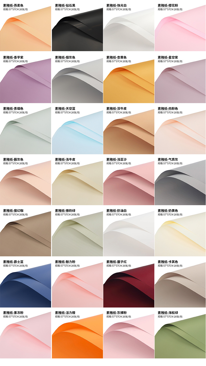 | Colores | Té de hielo de papel simple y elegante,Polvo elegante de papel simple y elegante,Castaño retro de papel simple y elegante,Rojo rico de papel simple y elegante,Polvo de gelatina de papel simple y elegante,Papel liso-verde pino de mar,Polvo desnudo gris de papel simple y elegante,Naranja vibrante de papel simple y elegante,Papel liso-azul jazz,Papel liso-caqui,Papel liso y elegante-rojo,Polvo de encanto de papel simple y elegante,Café mágico de papel simple y elegante,Papel liso-amarillo leche,Papel liso y elegante-crema blanca,Papel liso y elegante-verde leche tierna,Papel liso-raíz de loto gris,Papel liso-temperamento gris,Papel simple y elegante-pasta de frijoles poco profunda,Papel liso-piel de vaca clara,Papel liso-humo azul,Papel liso-carne rosa,Piel de vaca de papel simple y elegante,Papel liso-azul cielo,Papel liso y elegante: púrpura fragante,Papel liso-cielo estrellado púrpura,Papel liso-amarillo albaricoque,Papel liso-gris ahumado,Papel liso-avena,Polen de papel simple y elegante,Papel liso-blanco nacarado,Papel liso-diamante negro |