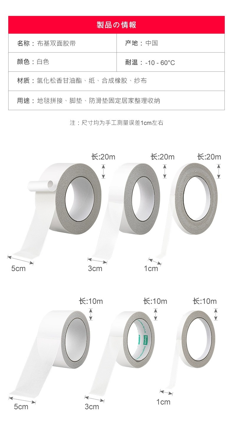| Modelo de especificación | 1CM × 10 m,2CM*10M,4CM × 5 m,5CM*10M,Se puede determinar la longitud y el ancho de los modelos personalizados. |