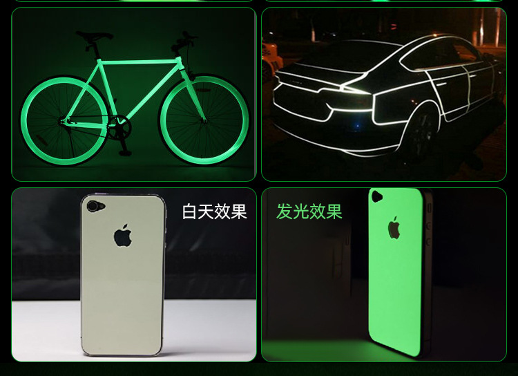 6、使用时将发光膜背面离形纸除去,将发光膜加以一定的压力平整贴于处理好的物体表面,注意边角处贴 合好。