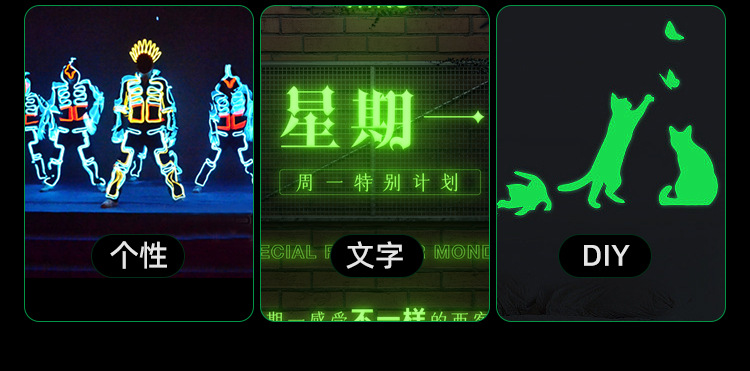 2、可将发光膜裁成各种形状,直接贴于某处(如电话、开关等)起到装饰、指示作用。