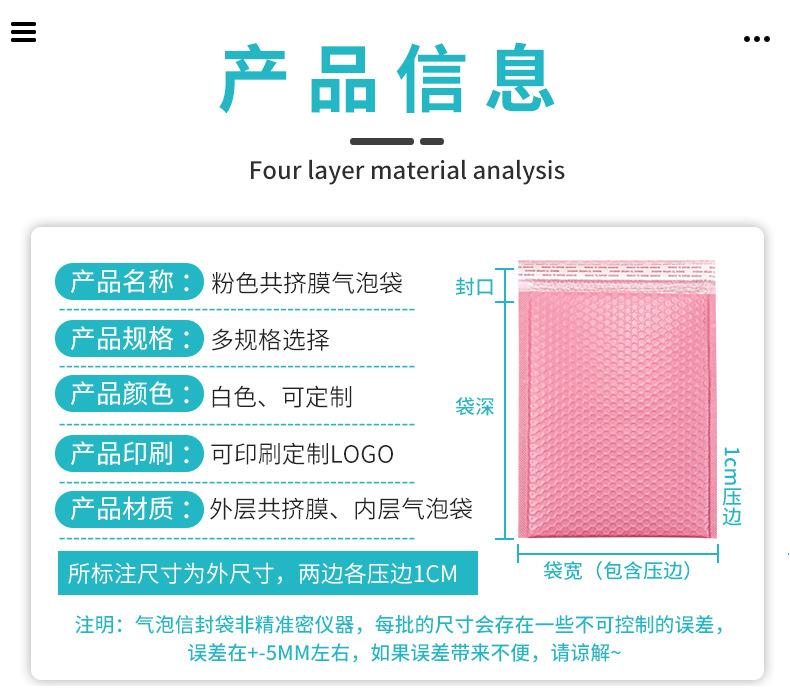 | Especificaciones y modelos | Bolsa de burbujas rosa; 11*13+4 cm (1100/caja); 4,8,Bolsa de burbujas rosa; 11*15+4 cm (900/caja); 4,8,Bolsa de burbujas rosa; 13*15+4 cm (750/caja); 4,8,Bolsa de burbujas rosa; 13*18+4cm (700/caja); 4,8,Bolsa de burbujas rosa; 15*18+4cm (600/caja); 4,8,Bolsa de burbujas rosa; 17*21+4cm (480/caja); 4,8,Bolsa de burbujas rosa; 18*23+4cm (400/caja); 4,8,Bolsa de burbujas rosa; 20*28+4cm (300/caja); 4,8,Bolsa de burbujas rosa; 23*28+4 cm (230/caja); 4,8,Bolsa de burbujas rosa; 26*33+4cm (200/caja); 4,8,Bolsa de burbujas rosa; 28*38+4 cm (150/caja); 4,8,Bolsa de burbujas rosa; 32*38+5 cm (130/caja); 4,8,Bolsa de burbujas rosa; 35*45+5 cm (110/caja); 4,8,Bolsa de burbujas rosa; 38*48+5 cm (100/caja); 4,8,Bolsa de burbujas rosa; 45*58+5 cm (100/caja); 4,8,Bolsa de burbujas rosa nude; 11*13+4cm(1100/caja);4.8,Bolsa de burbujas rosa nude; 11*15+4cm (900/caja); 4.8,Bolsa de burbujas rosa nude; 13*15+4cm (750/caja); 4.8,Bolsa de burbujas rosa nude; 13*18+4cm (700/caja); 4.8,Bolsa de burbujas rosa nude; 15*18+4cm (600/caja); 4.8,Bolsa de burbujas rosa nude; 17*21+4cm (480/caja); 4.8,Bolsa de burbujas rosa nude; 18*23+4cm (400/caja); 4.8,Bolsa de burbujas rosa nude;20*28+4cm (300/caja);4.8,Bolsa de burbujas rosa nude;23*28+4cm (230/caja);4.8,Bolsa de burbujas rosa nude;26*33+4cm (200/caja);4.8,Bolsa de burbujas rosa nude;28*38+4cm (150/caja);4.8,Bolsa de burbujas rosa nude;32*38+5cm (130/caja);4.8,Bolsa de burbujas rosa nude;35*45+5cm (110/caja);4.8,Bolsa de burbujas rosa nude;38*48+5cm (100/caja);4.8,Bolsa de burbujas rosa nude;45*58+5cm (100/caja);4.8,Bolsa de burbujas azul; 11*13+4 cm (1100/caja); 4,8,Bolsa de burbujas azul; 11*15+4 cm (900/caja); 4,8,Bolsa de burbujas azul; 13*15+4 cm (750/caja); 4,8,Bolsa de burbujas azul; 13*18+4 cm (700/caja); 4,8,Bolsa de burbujas azul; 15*18+4 cm (600/caja); 4,8,Bolsa de burbujas azul; 17*21+4 cm (480/caja); 4,8,Bolsa de burbujas azul; 18*23+4 cm (400/caja); 4,8,Bolsa de burbujas azul; 20*28+4 cm (300/caja); 4,8,Bolsa de burbujas azul; 23*28+4 cm (230/caja); 4,8,Bolsa de burbujas azul; 26*33+4 cm (200/caja); 4,8,Bolsa de burbujas azul; 28*38+4 cm (150/caja); 4,8,Bolsa de burbujas azul; 32*38+5 cm (130/caja); 4,8,Bolsa de burbujas azul; 35*45+5 cm (110/caja); 4,8,Bolsa de burbujas azul; 38*48+5 cm (100/caja); 4,8,Bolsa de burbujas azul; 45*58+5 cm (100/caja); 4,8,Bolsa de burbujas naranja; 11*13+4cm(1100/caja);4.8,Bolsa de burbujas naranja; 11*15+4 cm (900/caja); 4,8,Bolsa de burbujas naranja; 13*15+4 cm (750/caja); 4,8,Bolsa de burbujas naranja; 13*18+4 cm (700/caja); 4,8,Bolsa de burbujas naranja; 15*18+4 cm (600/caja); 4,8,Bolsa de burbujas naranja; 18*23+4 cm (400/caja); 4,8,Bolsa de burbujas naranja; 20*28+4 cm (300/caja); 4,8,Bolsa de burbujas naranja; 23*28+4 cm (230/caja); 4,8,Bolsa de burbujas naranja; 26*33+4 cm (200/caja); 4,8,Bolsa de burbujas naranja; 32*38+5 cm (130/caja); 4,8,Bolsa de burbujas naranja; 35*45+5 cm (110/caja); 4,8,Bolsa de burbujas naranja; 38*48+5 cm (100/caja); 4,8,Bolsa de burbujas naranja; 45*58+5 cm (100/caja); 4,8,Bolsa de burbujas negra; 11*13+4 cm (1100/caja); 4,8,Bolsa de burbujas negra; 11*15+4 cm (900/caja); 4,8,Bolsa de burbujas negra; 13*15+4 cm (750/caja); 4,8,Bolsa de burbujas negra; 13*18+4 cm (700/caja); 4,8,Bolsa de burbujas negra; 15*18+4 cm (600/caja); 4,8,Bolsa de burbujas negra; 17*21+4 cm (480/caja); 4,8,Bolsa de burbujas negra; 18*23+4 cm (400/caja); 4,8,Bolsa de burbujas negra; 20*28+4 cm (300/caja); 4,8,Bolsa de burbujas negra; 23*28+4 cm (230/caja); 4,8,Bolsa de burbujas negra; 26*33+4 cm (200/caja); 4,8,Bolsa de burbujas negra; 28*38+4 cm (150/caja); 4,8,Bolsa de burbujas negra; 32*38+5 cm (130/caja); 4,8,Bolsa de burbujas negra; 35*45+5 cm (110/caja); 4,8,Bolsa de burbujas negra; 38*48+5 cm (100/caja); 4,8,Bolsa de burbujas negra; 45*58+5 cm (100/caja); 4,8,Bolsa de burbujas negra; 60*48 5cm(100 piezas/caja) ;4.8,Bolsa de burbujas negra; 70*58 5cm(100 piezas/caja);4.8 |