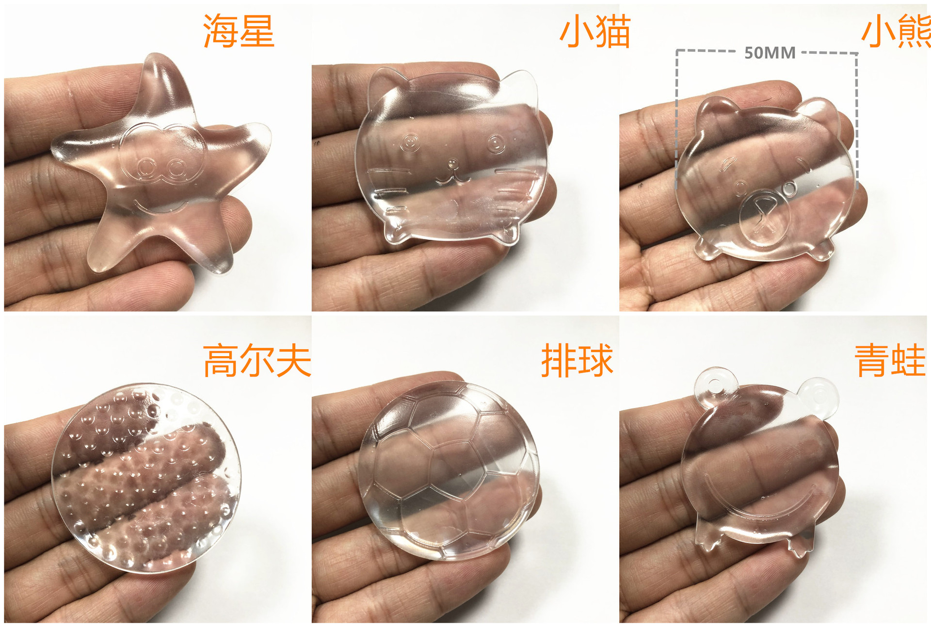 新款透明海星/小猫/小熊/排球/高尔夫/小花朵/青蛙:单个重量大概8g左右,单个尺寸大概宽5CM/5.5CM。墙壁厚款防撞垫方形家具冰箱硅胶防震垫门把手墙门吸免打孔防撞贴