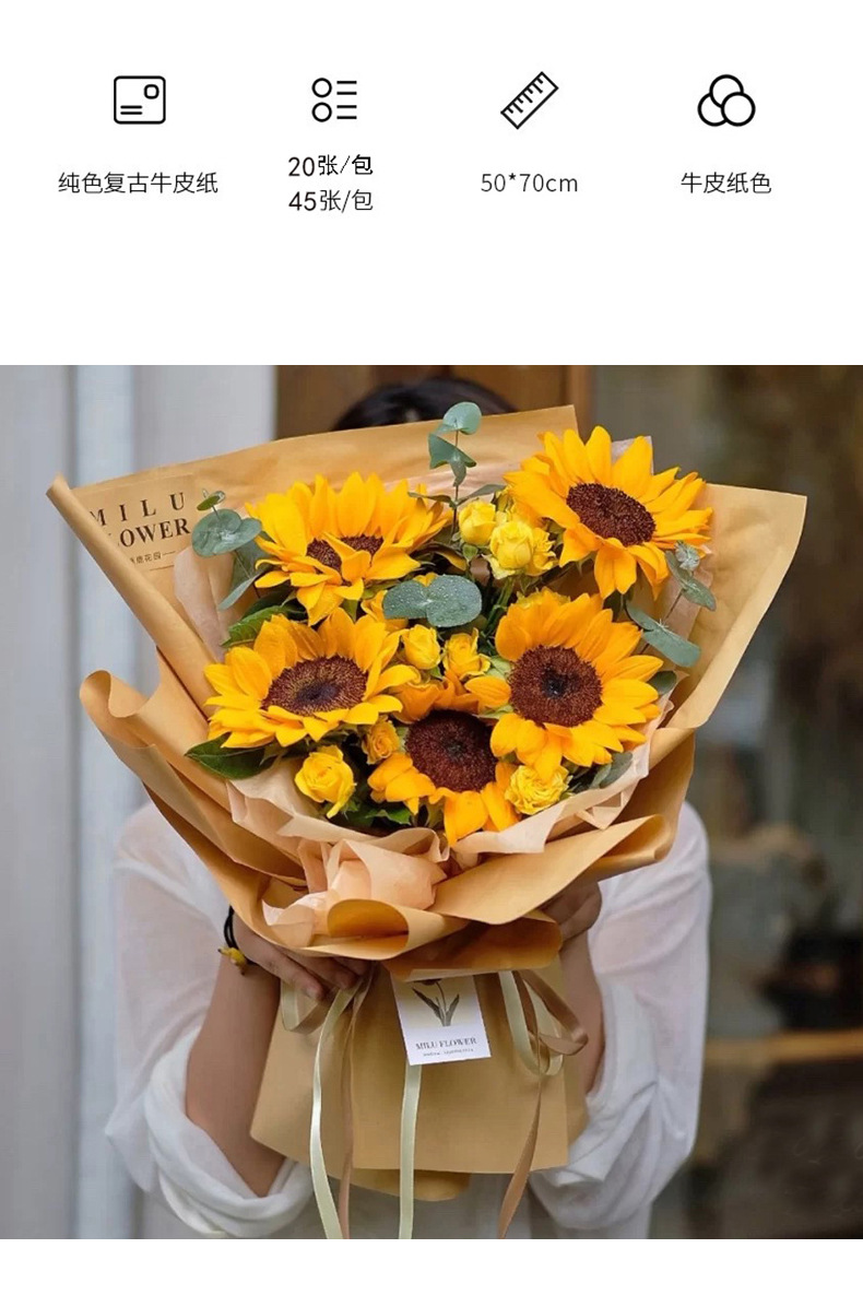 Fábrica al por mayor de papel Kraft de color primario flor papel de regalo floristería ramo floral embalaje de papel Kraft de color sólido