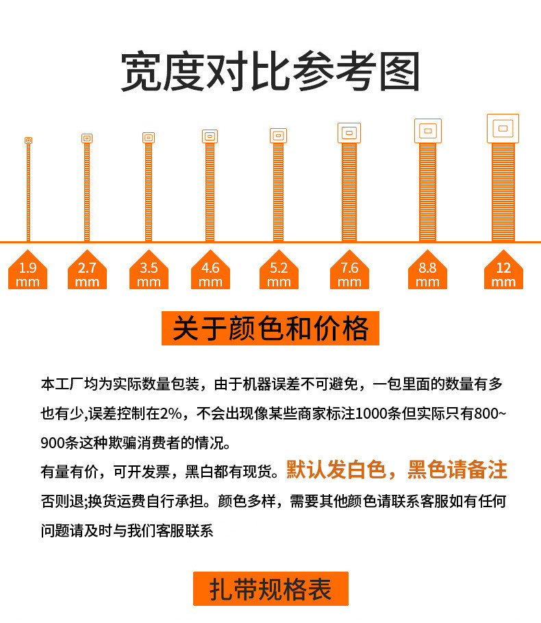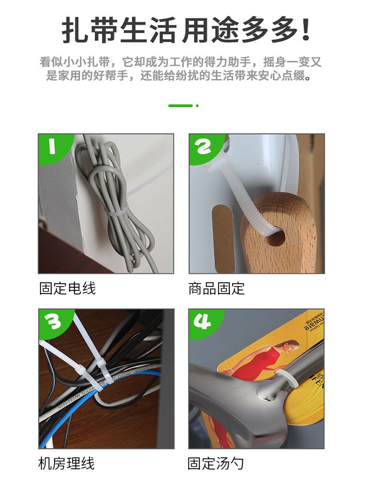 Cable de nylon atadura de cables autobloqueante plástico atadura de cables 4*200