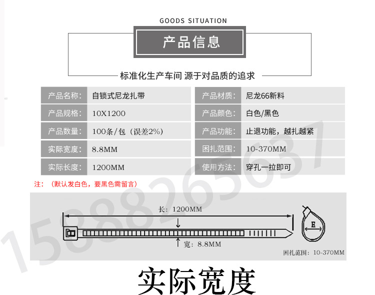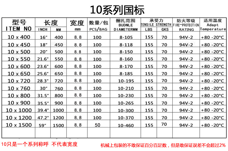 | Modelo de especificación | Correa blanca; 10*300 estándar nacional 8,8mm de ancho 100 tiras/paquete,Cinturón de brazaletes blanco; 10*350 estándar nacional 8,8mm de ancho 100 piezas,Correa blanca; 10*400 estándar nacional 8,8mm de ancho 100 tiras/paquete,Cinturón de brazaletes blanco; 10*450 estándar nacional 8.8mm de ancho 100 tiras/paquete,Correa blanca; 10*500 estándar nacional 8,8mm de ancho 100 tiras/paquete,Correa blanca; 10*550 estándar nacional 8,8mm de ancho 100 tiras/paquete,Tape blanco; 10*600 estándar nacional 8.8mm de ancho 100 tiras/paquete,Cinturón de brazaletes blanco; 10*650 estándar nacional 8.8mm de ancho 100 tiras/paquete,Cinturón de brazaletes blanco; 10*720 estándar nacional 8.8mm de ancho 100 tiras/paquete,Cinturón de brazaletes blanco; 10*760 estándar nacional 8.8mm de ancho 100 tiras/paquete,Correa blanca; 10*800 estándar nacional 8,8mm de ancho 100 tiras/paquete,Baliza blanca; 10*900 estándar nacional 8,8mm de ancho 100 tiras/paquete,Cinturón de brazaletes blanco; 10*1000 estándar nacional 8.8mm de ancho 100 tiras/paquete,Correa blanca; 10*1200 estándar nacional 8,8mm de ancho 100 tiras/paquete,Correa blanca; 10*1500 estándar nacional 8,8mm de ancho 50 tiras/paquete,Correa negra; 10*300 estándar nacional 8.8mm de ancho 100 tiras/paquete,Correa negra; 10*350 estándar nacional 8.8mm de ancho 100 tiras,Correa negra; 10*400 estándar nacional 8.8mm de ancho 100 tiras/paquete,Correa negra; 10*450 estándar nacional 8.8mm de ancho 100 tiras/paquete,Correa negra; 10*500 estándar nacional 8.8mm de ancho 100 tiras/paquete,Correa negra; 10*550 estándar nacional 8.8mm de ancho 100 tiras/bolsa,Correa negra; 10*600 estándar nacional 8.8mm de ancho 100 tiras/bolsa,Correa negra; 10*650 estándar nacional 8.8mm de ancho 100 tiras/bolsa,Correa negra; 10*720 estándar nacional 8.8mm de ancho 100 tiras/paquete,Correa negra; 10*760 estándar nacional 8.8mm de ancho 100 tiras/paquete,Correa negra; 10*800 estándar nacional 8.8mm de ancho 100 tiras/paquete,Correa negra; 10*900 estándar nacional 8.8mm de ancho 100 tiras/paquete,Correa negra; 10*1000 estándar nacional 8.8mm de ancho 100 tiras/paquete,Correa negra; 10*1200 estándar nacional 8.8mm de ancho 100 tiras/bolsa,Correa negra; 10*1500 estándar nacional 8.8mm de ancho 50 tiras/paquete |