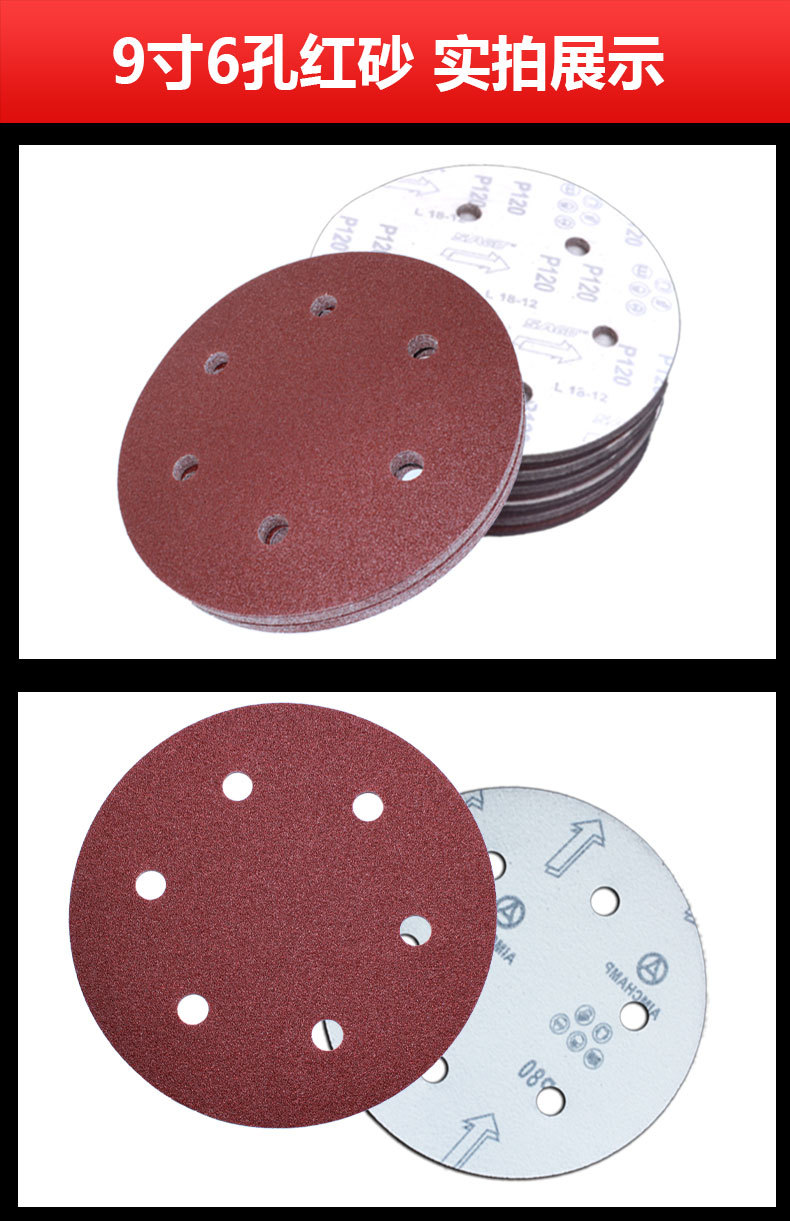 | Modelo | 9-inch 6-hole 60 #,9 pulgadas de 6 agujeros de 80 #,9-inch 6-hole 100 #,9-inch 6-hole 120 #,9-inch 6-hole 150 #,9-inch 6-hole 180 #,9-inch 6-hole 240 #,9-inch 6-hole 320 #,9-inch 8-hole 60 #,9-inch 8-hole 80 #,9-inch 8-hole 100 #,9-inch 8-hole 120 #,9-inch 8-hole 150 #,9-inch 8-hole 180 #,9 pulgadas de 8 agujeros 240 #,9-inch 8-hole 320 # |