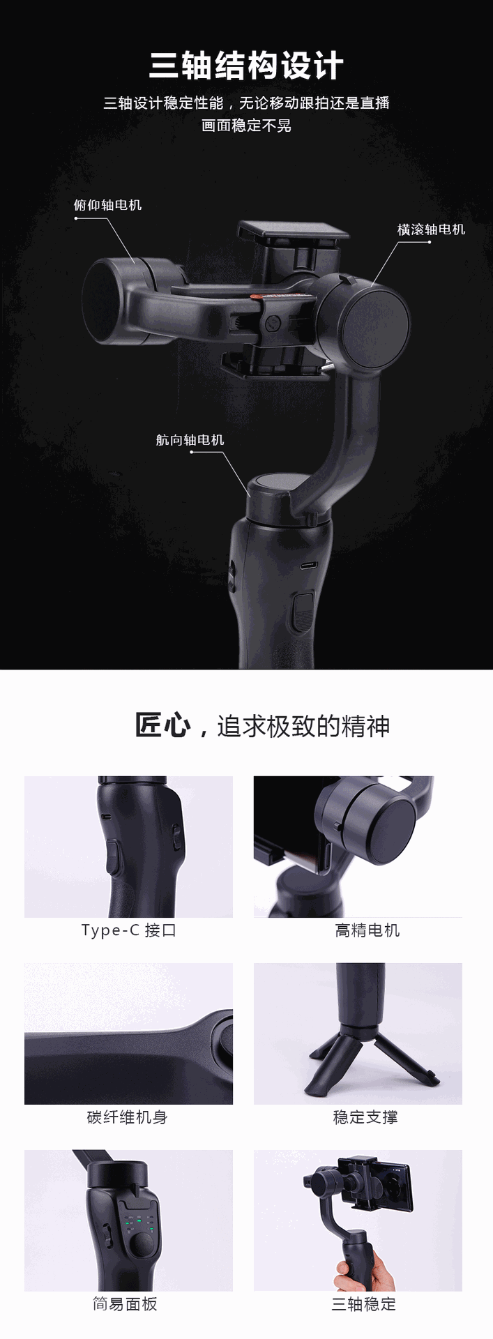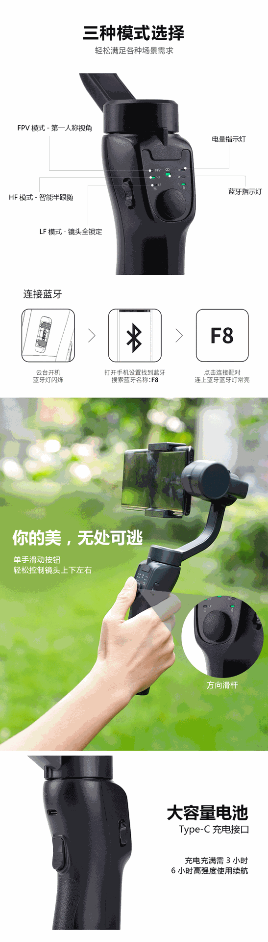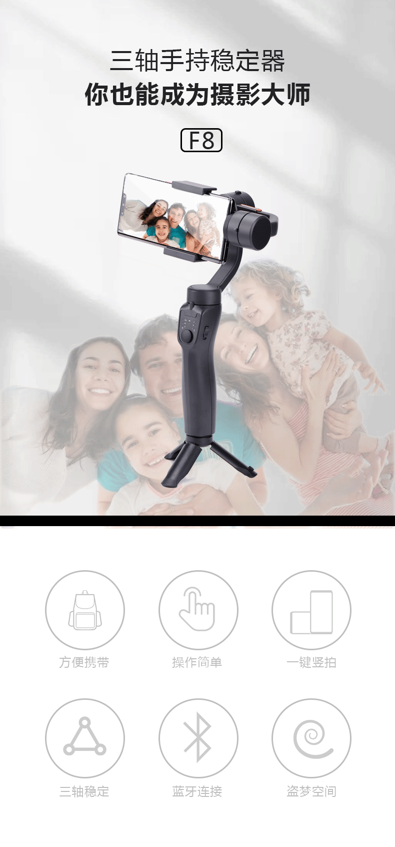 Teléfono móvil F8 estabilizador de tres ejes portátil PTZ transmisión en vivo anti-vibración y disparo instrumento de equilibrio VLOG auto-Fotografía Video