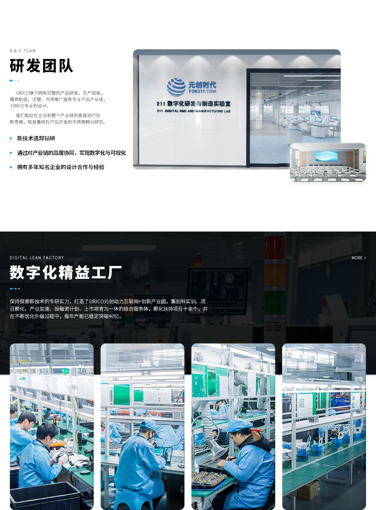 ORICO公司旗下拥有完整的产品研发,模具制造,注塑,五金冲压、生产组装、市场推广服务专业产品研发生产产业链,我们能实时、有效、快速地提供符合用户需求的创新型产品。
