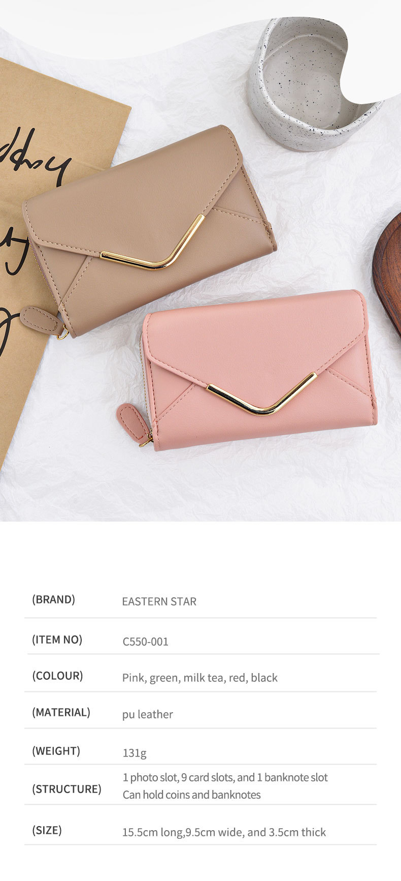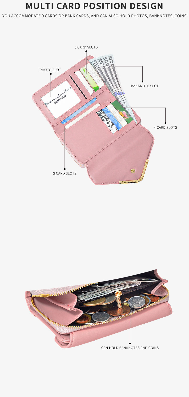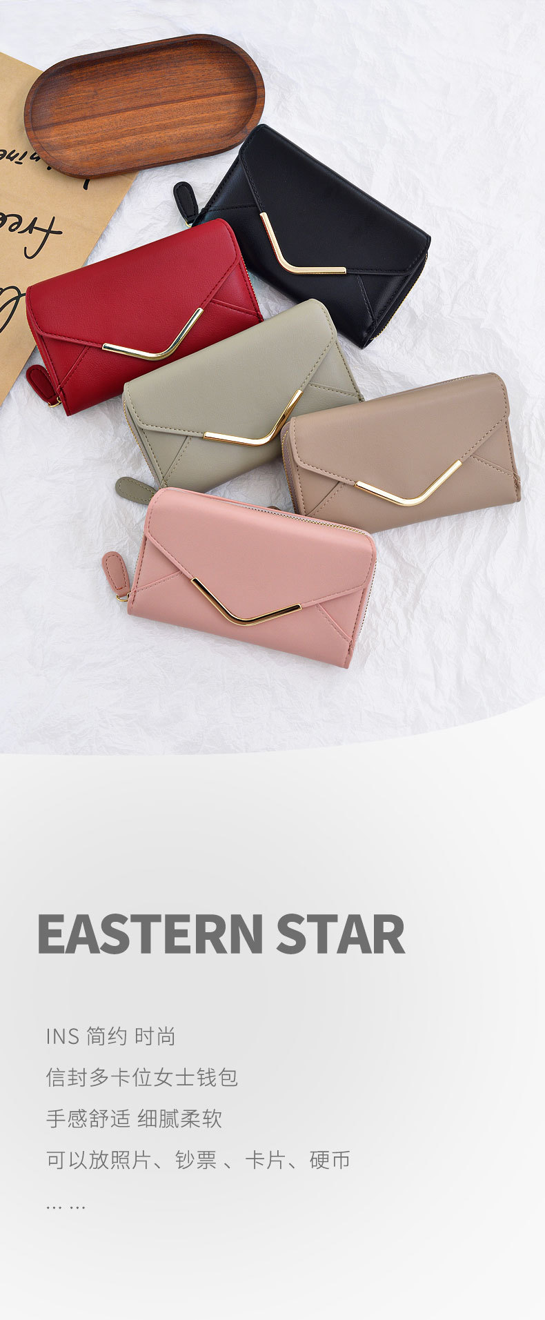 Comercio exterior transfronterizo de moda larga billetera de cremallera de gran capacidad bolsa de tarjetas bolsa de documentos bolsa de billetera