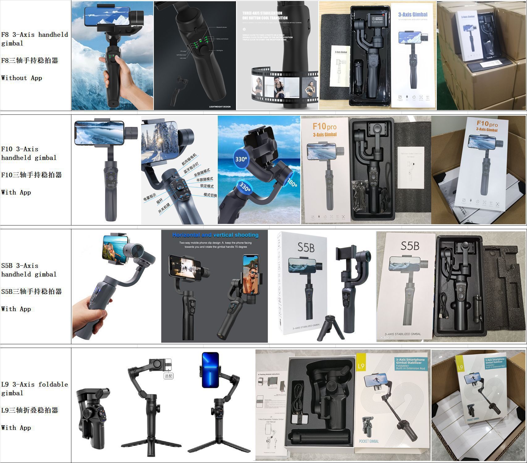 | Colores | C06 (con luz) Estabilizador de un solo eje negro,H5 estabilizador de un solo eje negro,Estabilizador plegable de tres ejes F5 gris,F5plus (sin App) Estabilizador de tres ejes negro,Color de pistola estabilizador de tres ejes F6,F8 (sin aplicación) estabilizador de tres ejes color de pistola,F10pro estabilizador de tres ejes negro,Estabilizador de tres ejes M1 negro,Estabilizador de tres ejes S5 negro,Estabilizador de tres ejes S5B negro,L7BPro tres ejes plegable estabilizador gris,L7Cpro tres ejes plegable estabilizador gris,L7Cpro plus estabilizador plegable de tres ejes gris,Estabilizador plegable de tres ejes de gama alta L9 negro |