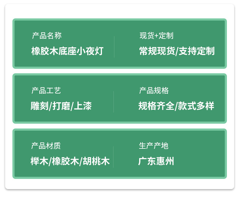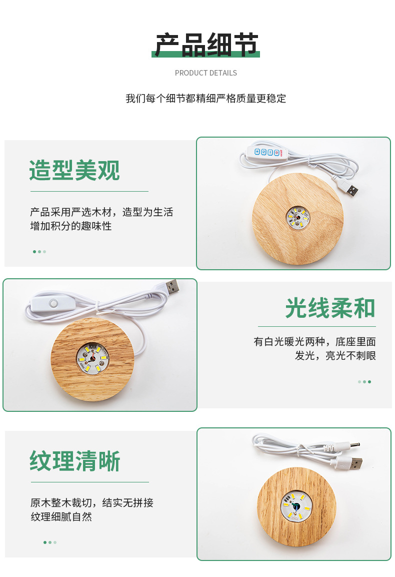 | Artículo No. | Base de madera redonda de caucho luz nocturna integral |