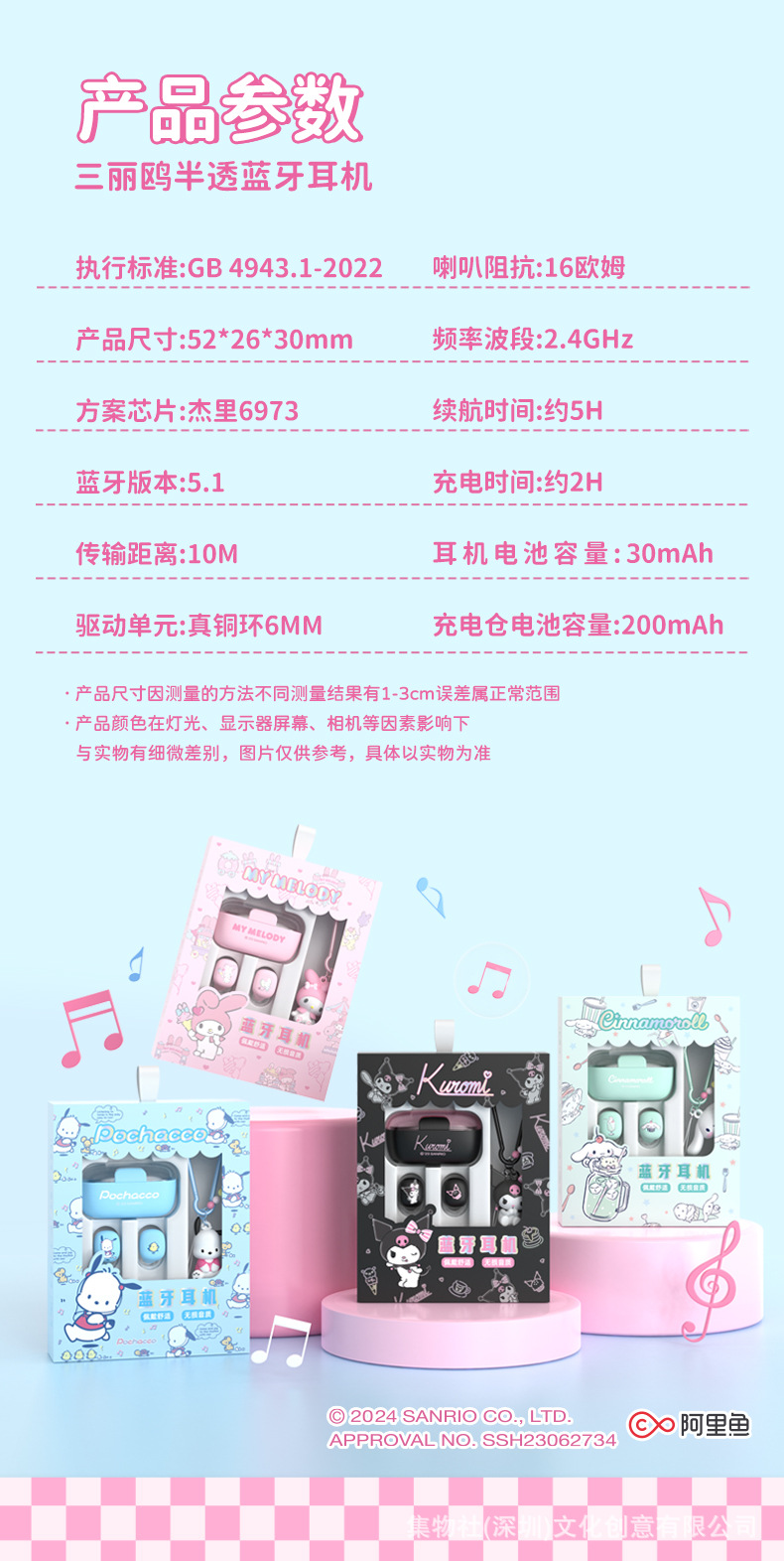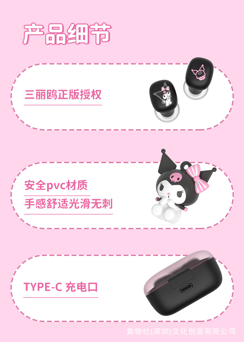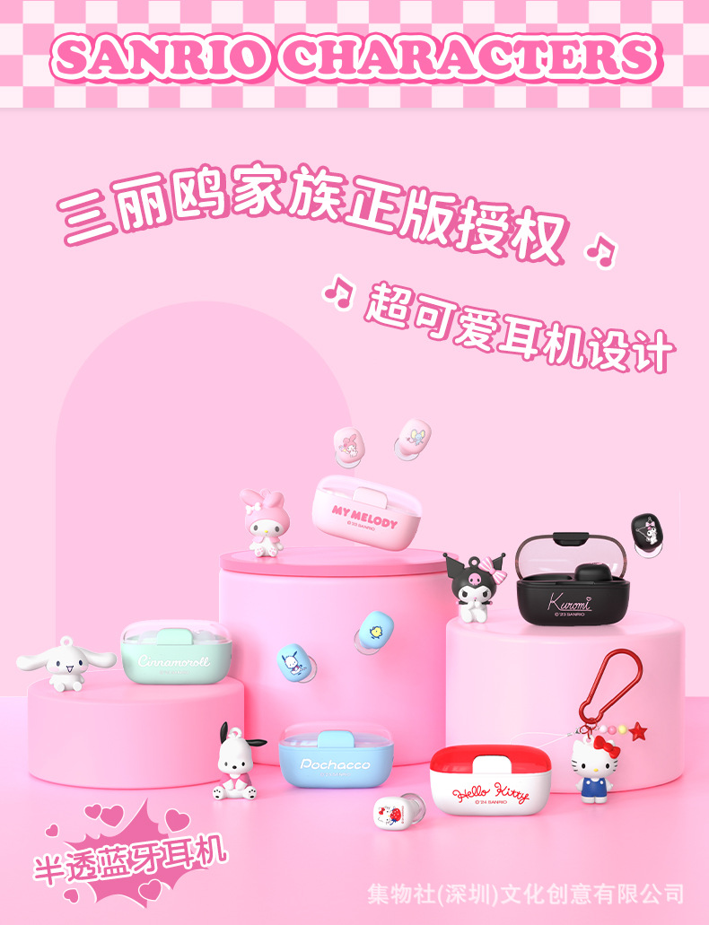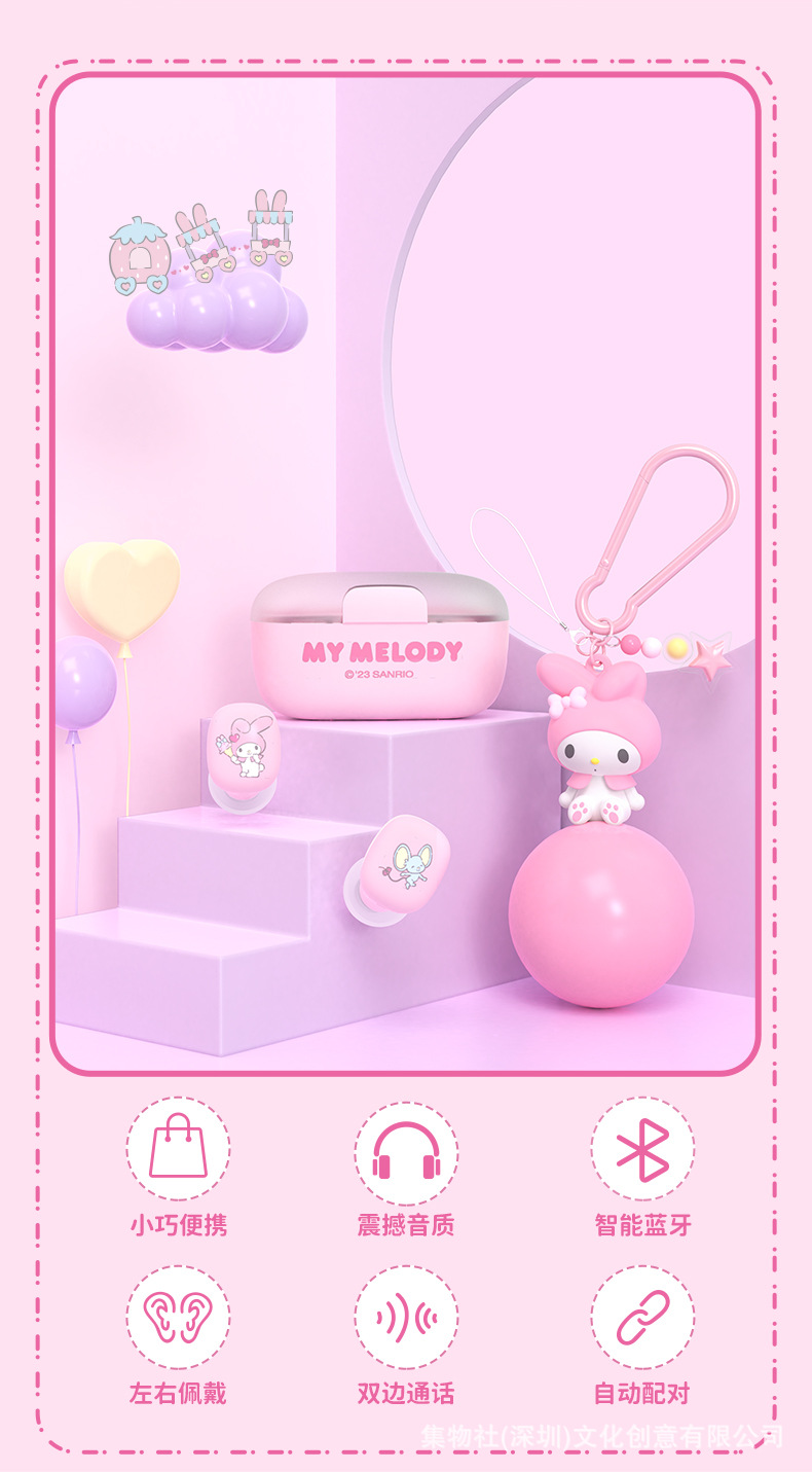 Coolomi HelloKitty Sanrio Cute Doll Marca compartida Auriculares con cancelación de ruido Auriculares Bluetooth semipermeables