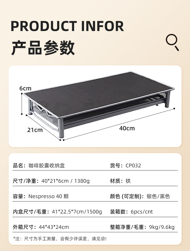 Organizador metálico para cápsulas Nespresso — cajón con capacidad para 40 cápsulas, diseño elegante de cocina