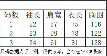 | Talla | 1, 2, 3 |