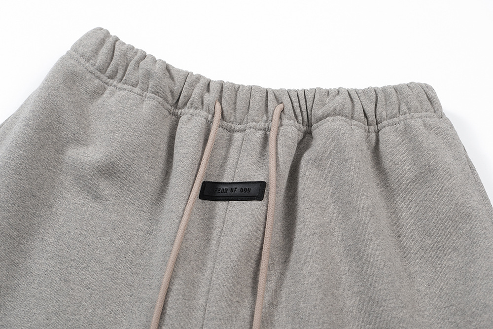 FEAR OF GOD ESSENTIALS FOG Pantalones cortos casuales sueltos con cordón de vello