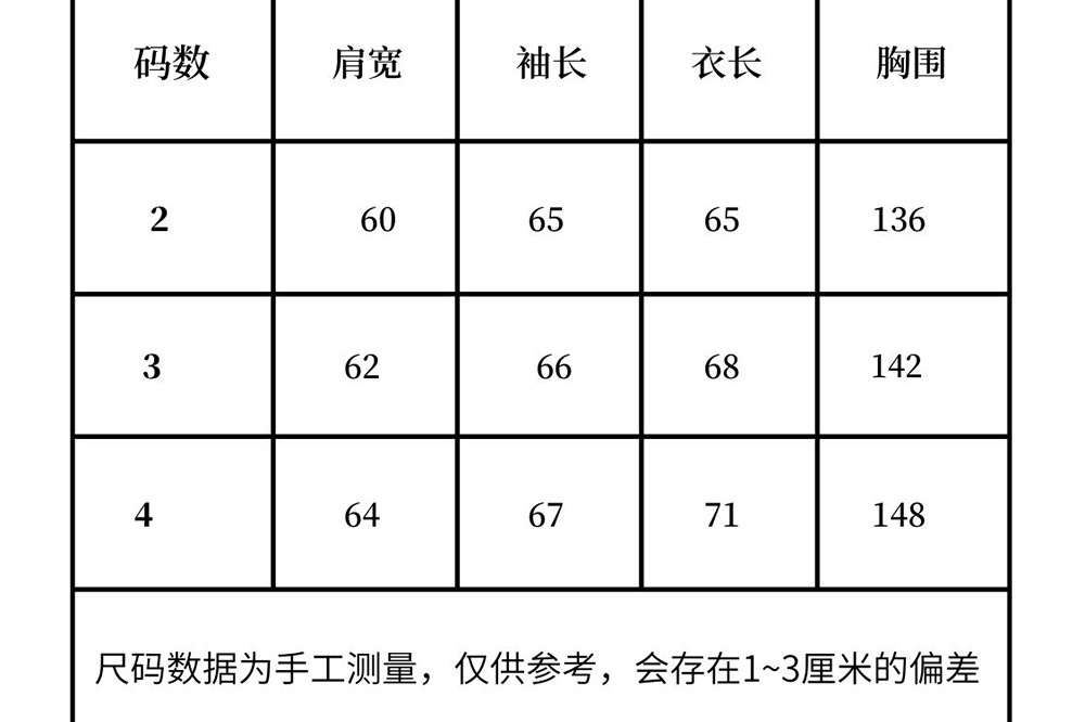 | Talla | 2, 3, 4 |