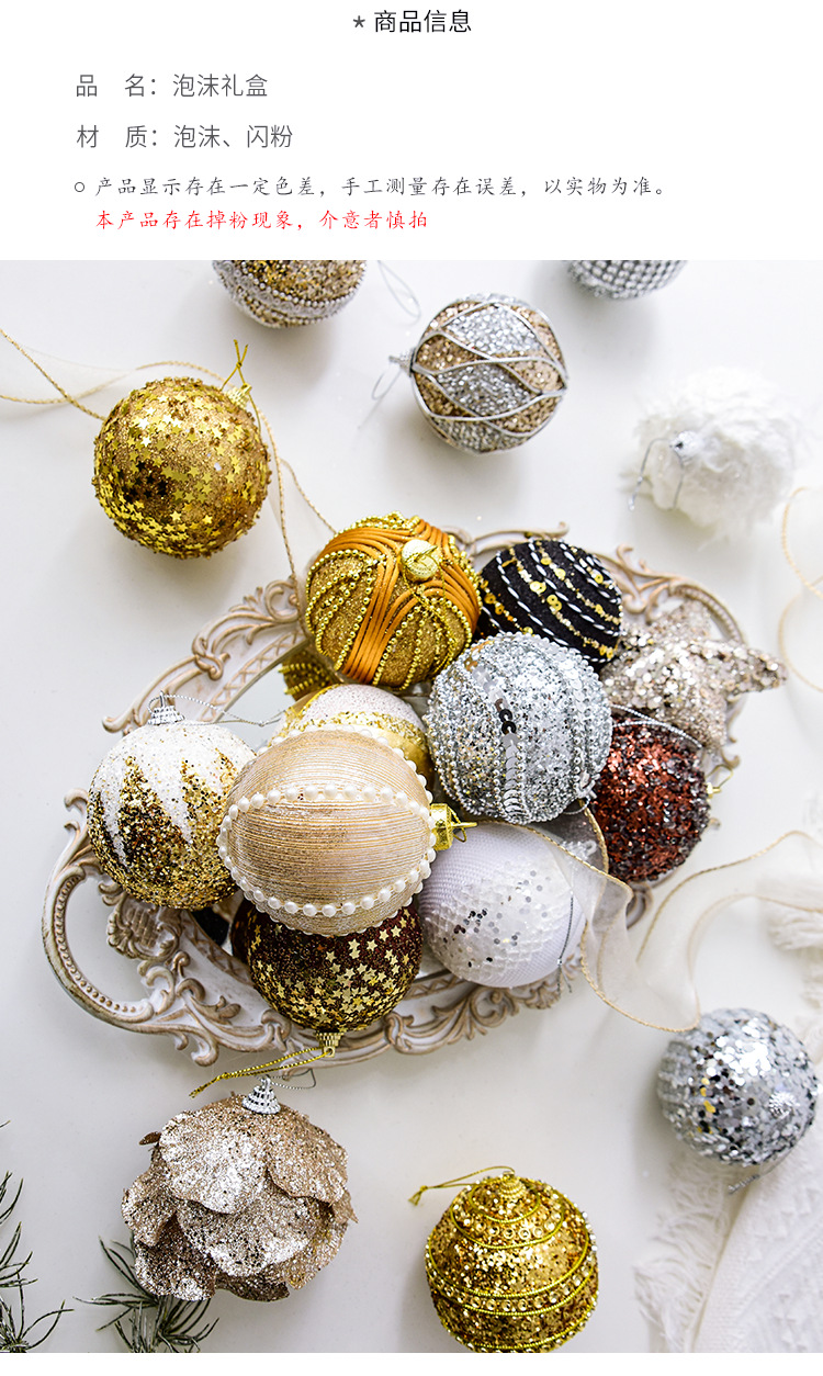 | color | Bola de encaje rojo/17g,Bola textura negra/9g,Bola de cuentas negra/14g,Bola de cuentas negra/11g,Bola de lentejuelas cónica blanca/9g,Hemisferio de sandía dorada/8g,Planeta azul de cinco puntas/14g,Bola de encaje blanco/10g,Champagne champiñones dorados/16g,Bellota de oro champán/9g,Árbol de navidad champán/9g,Muleta de plata/7g,Caja de regalo de patrón vertical dorado/16g,Caja de regalo champán/31g |