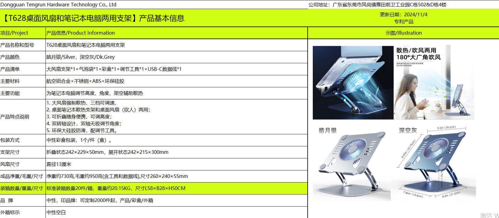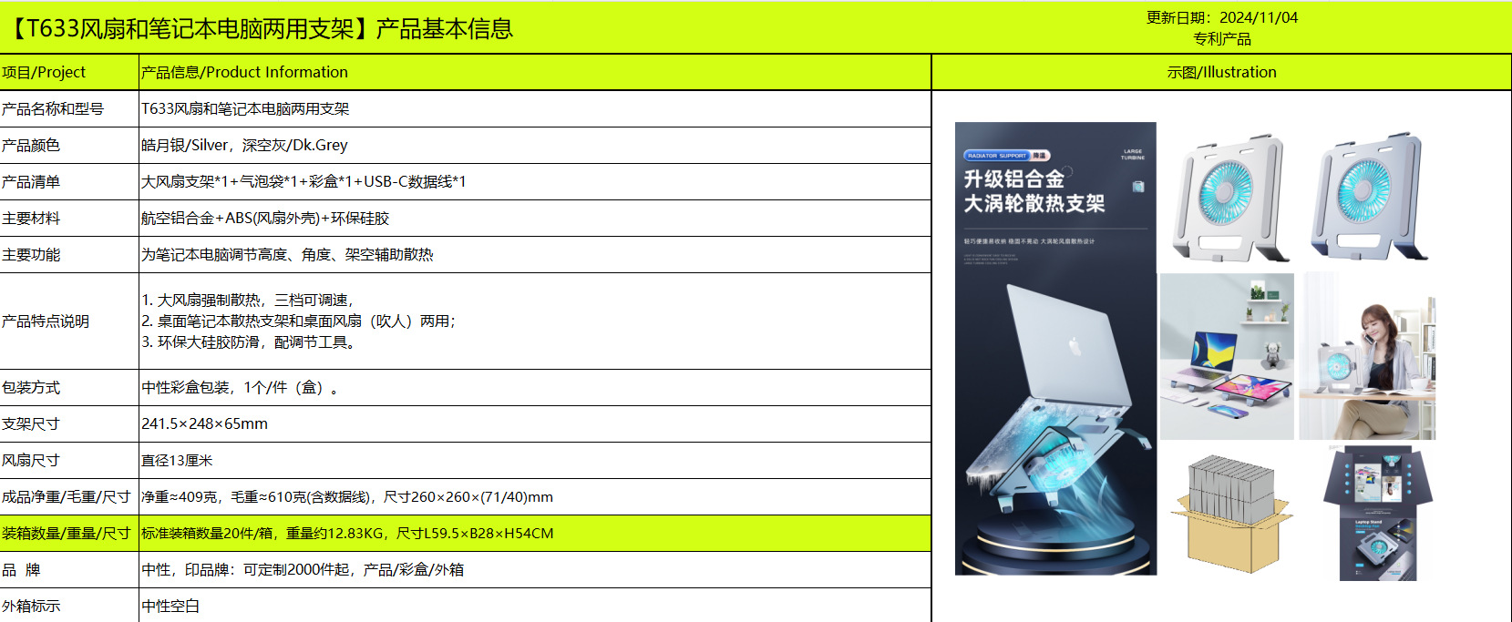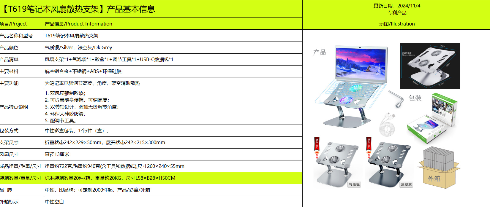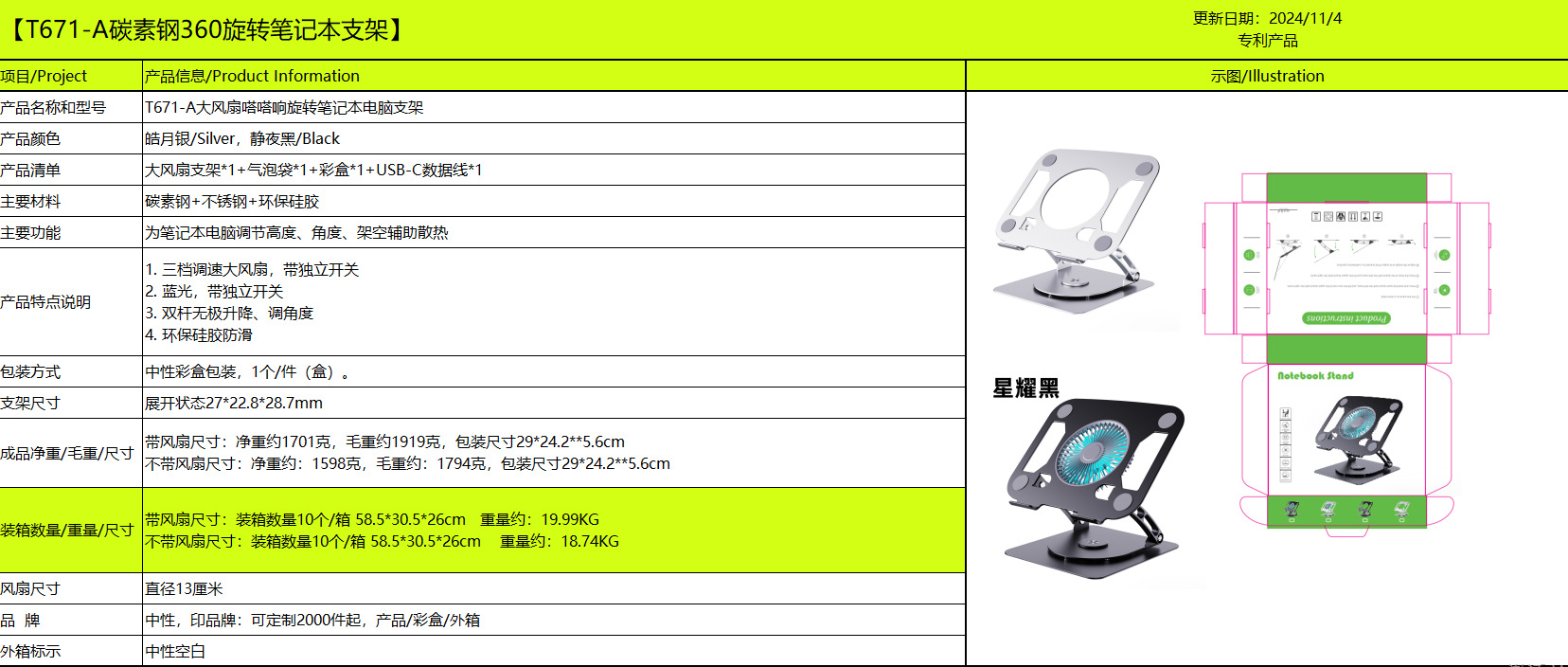 | Función | Refrigeración para portátiles, ajuste de altura y ajuste de ángulo. |