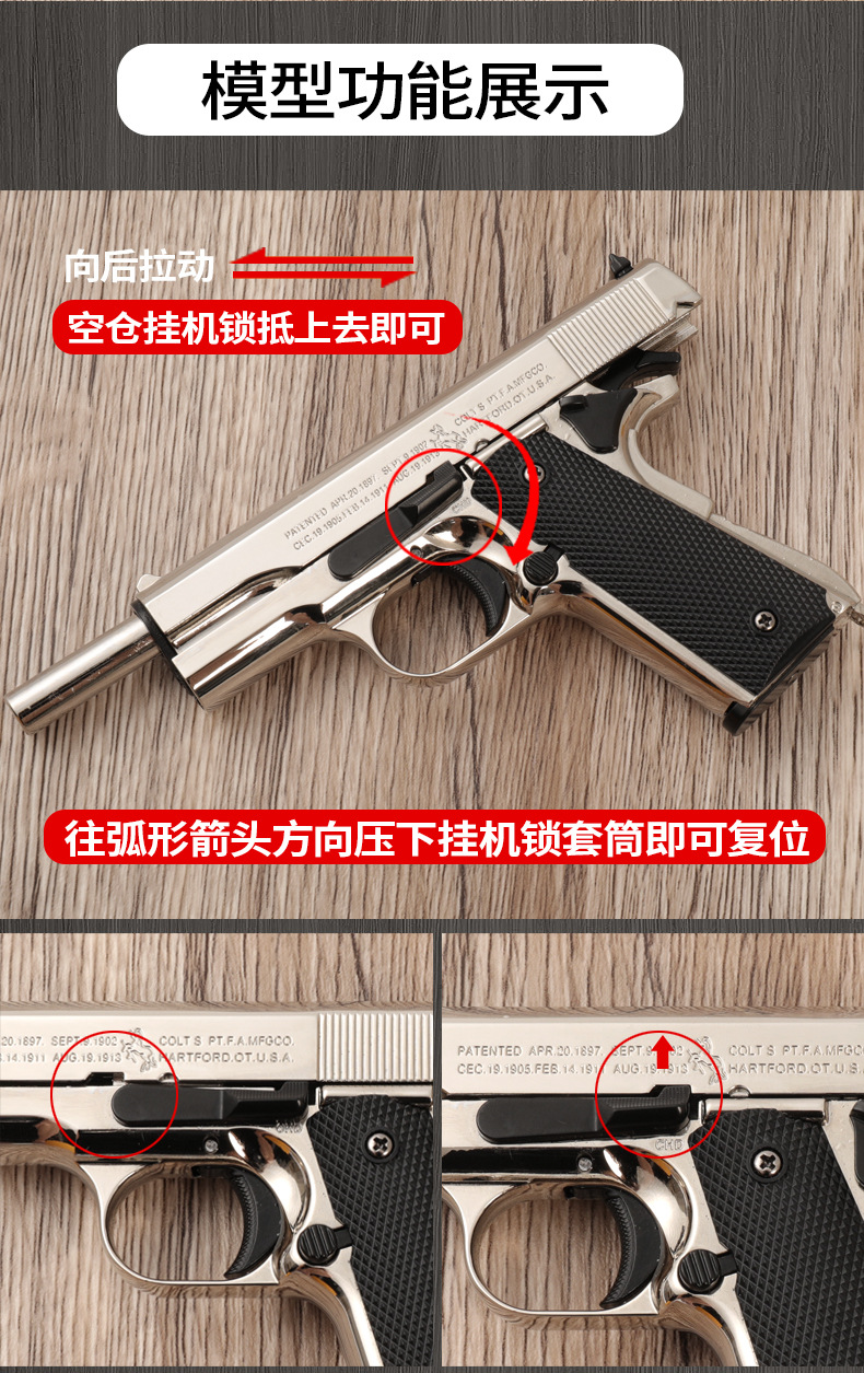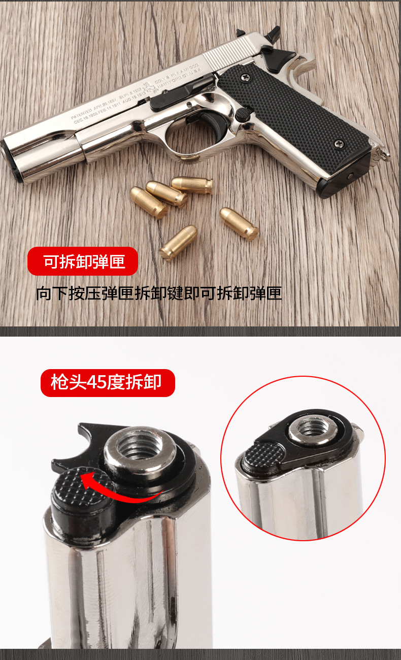 | Colores | Paquete de tarjeta/1911 color de pistola,Traje de tarjeta/plata 1911,Paquete de tarjetas/1911 negro,En caja/1911 color pistola,En caja/1911 negro,En caja/plata 1911,Accesorios/silenciador,Accesorios/caja de aleación,Accesorios/soporte universal,Accesorios/1911 modelo de bomba 5,Accesorios/cargador de 1911,Accesorios/Funda de cuero negro,Accesorios/Funda de cuero rojo,Accesorios/Funda de pistola de lona,estante de exhibición de metal |