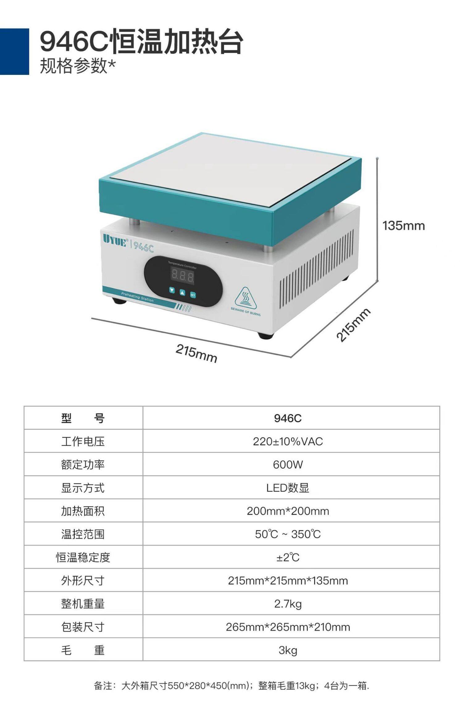 UYUE 946C mesa de calefacción placa caliente electrónica reparación plataforma de precalentamiento parche PCB calefacción teléfono móvil pantalla táctil LCD