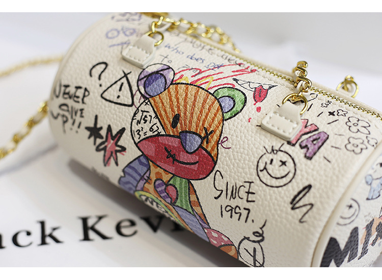 Bolso de mujer transfronteriza bolso de cilindro femenino 2023 nuevo oso graffiti cadena bolso de hombro bolsa de mensajero