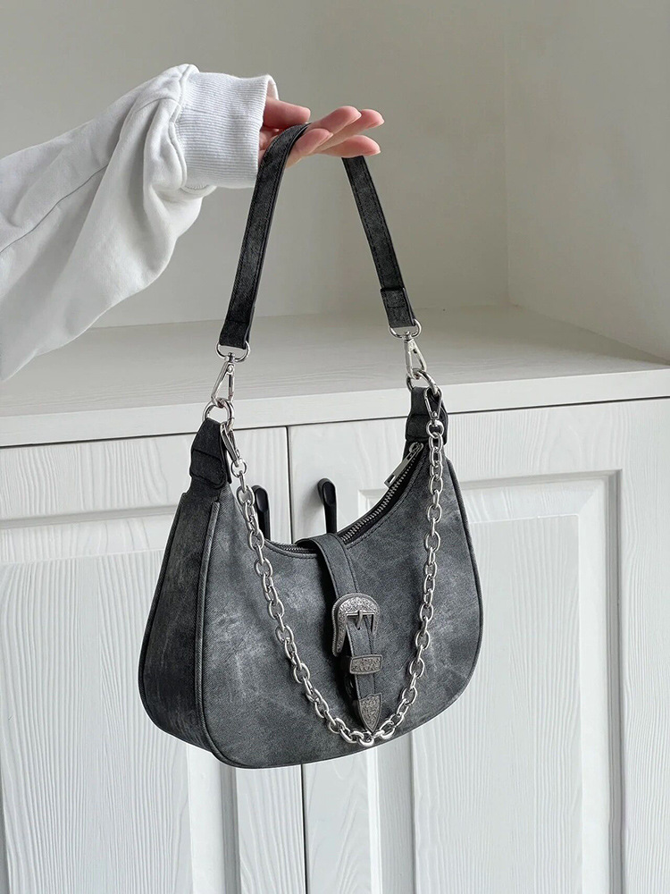 Bolso de axila retro estilo Hong Kong 2025 verano nuevo bolso femenino personalizado bolso de motocicleta bolso de hombro de gran capacidad de moda