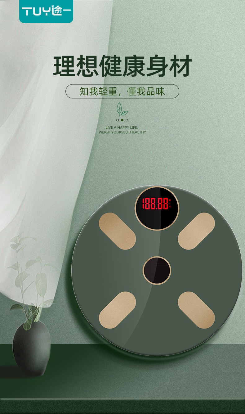 1、体脂数据是通过体重秤的传感器称重 +APP 大数据智能算法分析得出,并非体脂秤直接测量,秤面图案仅为装饰用。