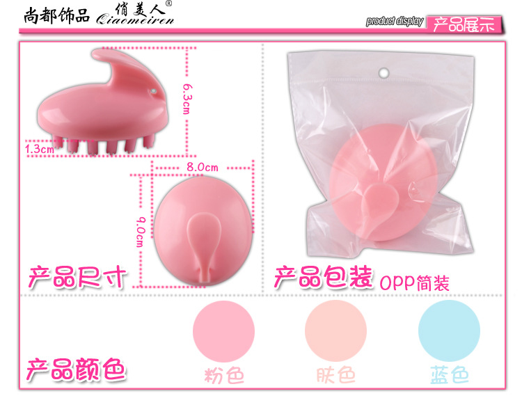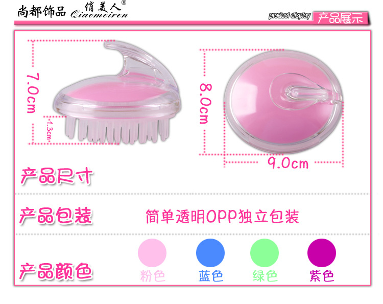 【商品简介】按摩洗头刷洗头按摩健脑.采用PP+EVA材料制作,人性化设计,做工精致,手感润滑,小巧方便,无异味,使用放心