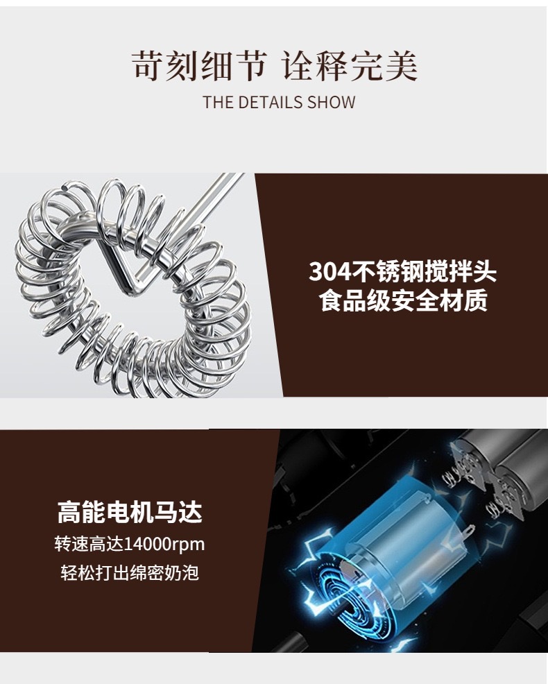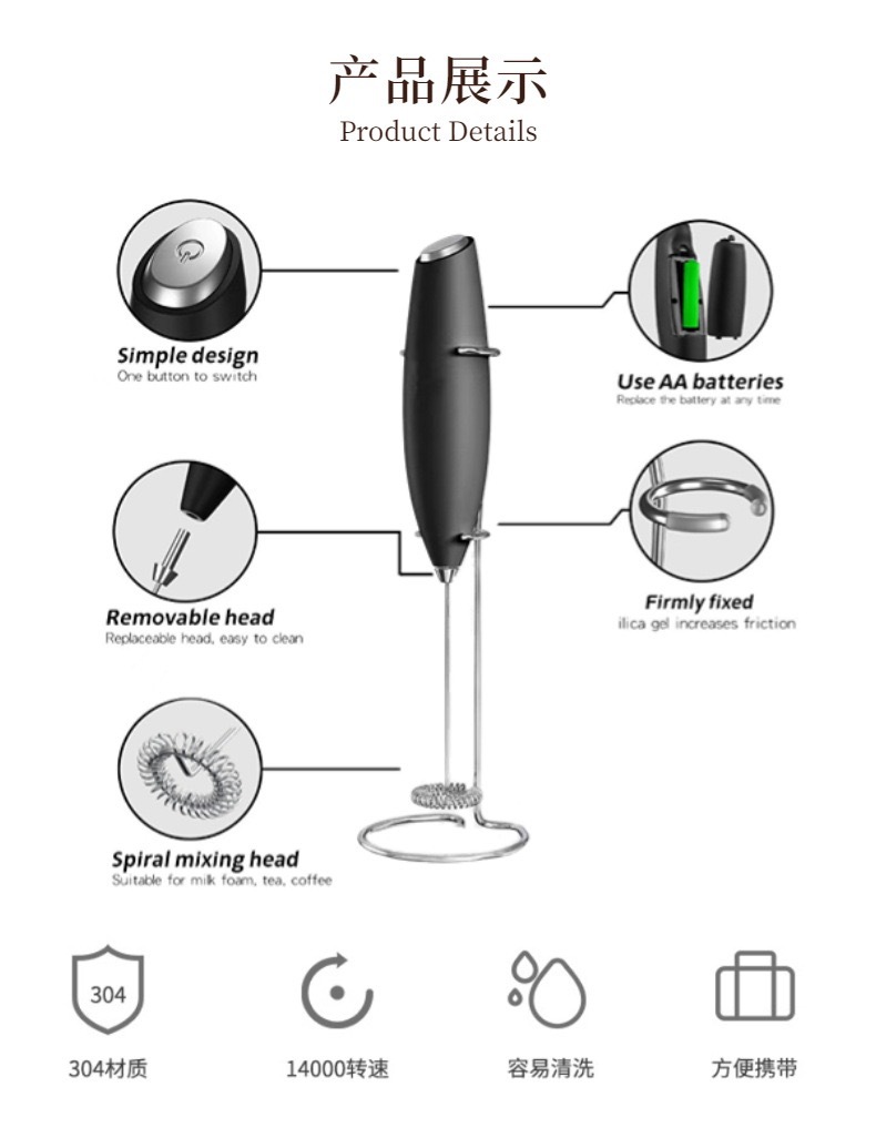 Batidora de leche licuadora eléctrica de mano de café transfronteriza batidora de leche de acero inoxidable de alta gama batidor de huevos multifunción