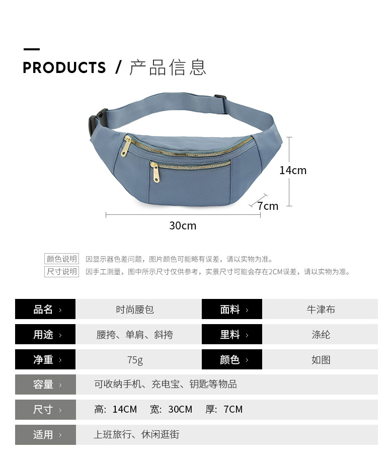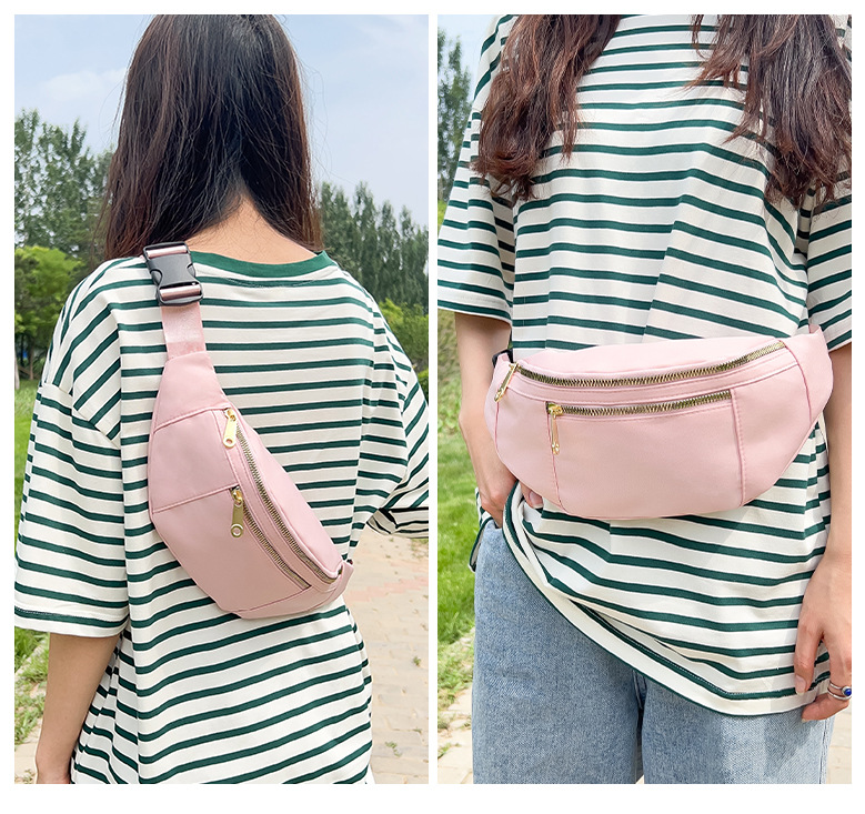 2023 nuevo simple macaron ocio al aire libre deportes cintura bolsa moda Oxford tela estilo Ins bolso de la cintura de las mujeres