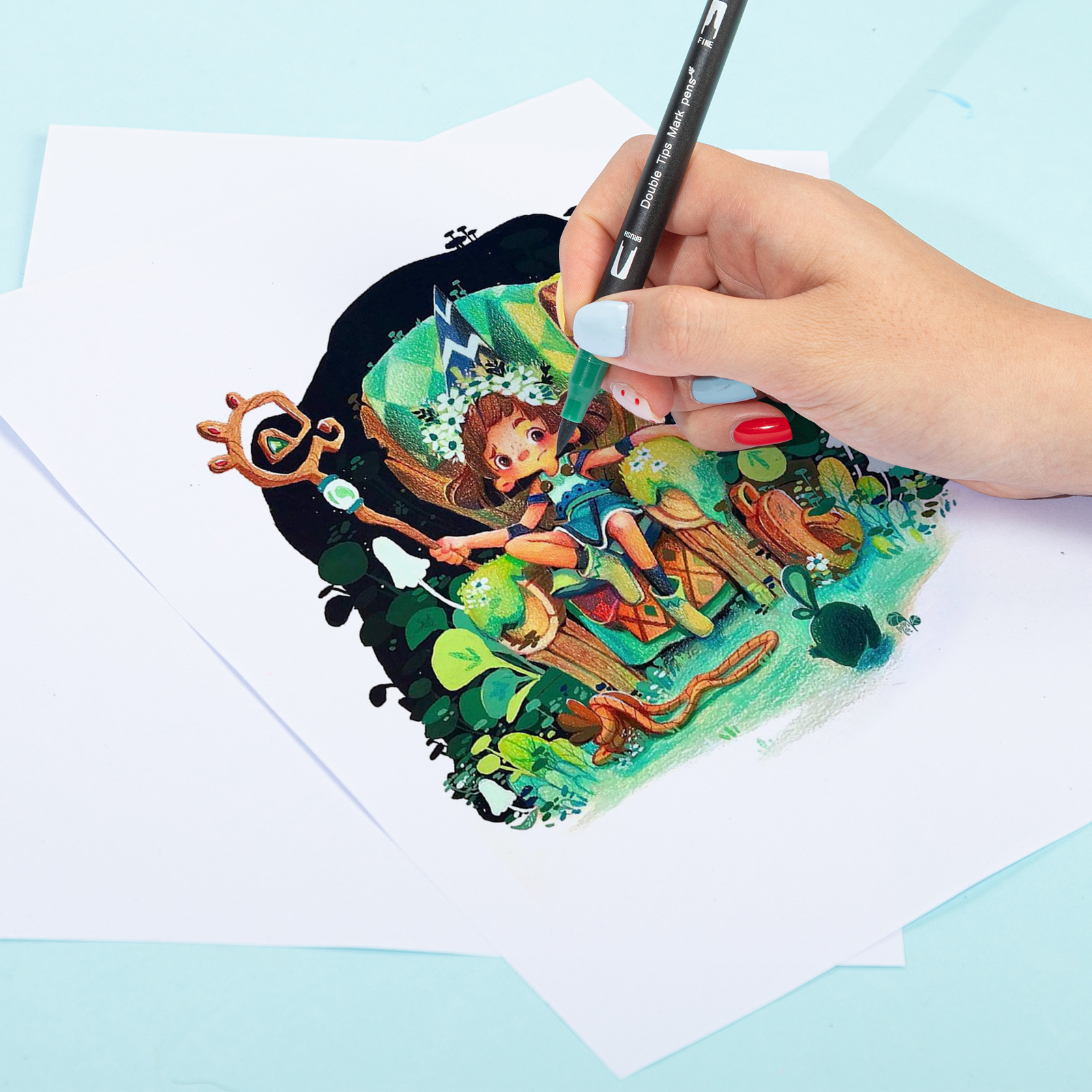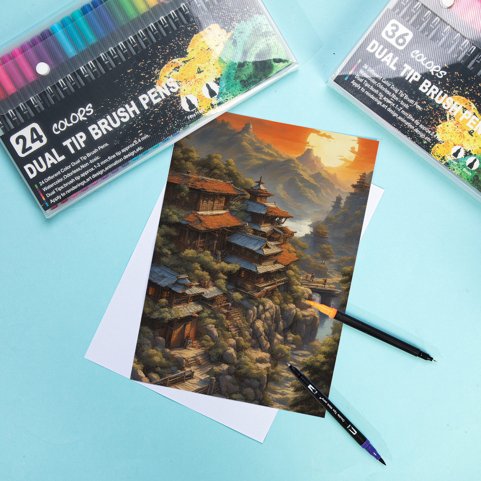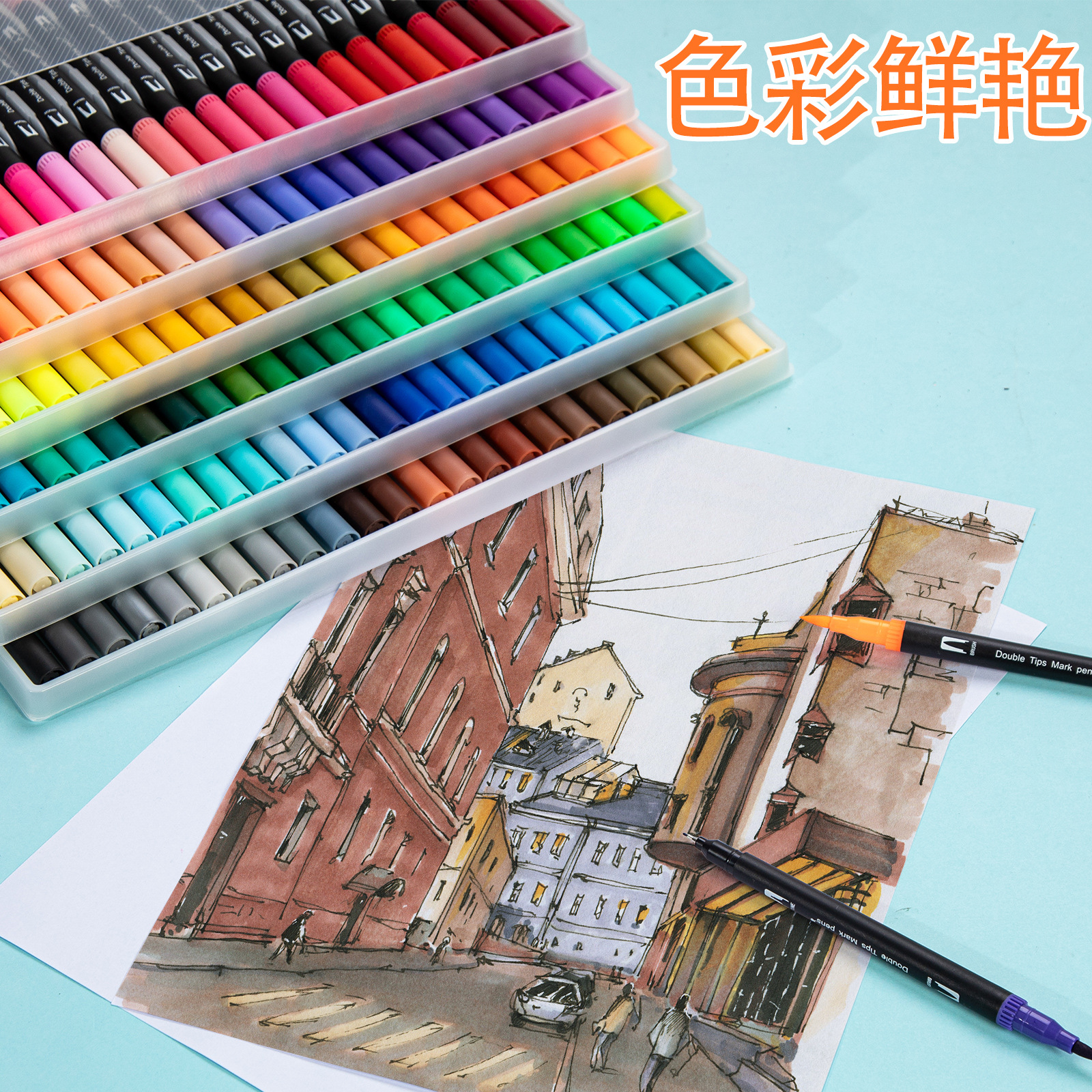 跨境亚马逊双头水彩笔勾线笔软头马克笔