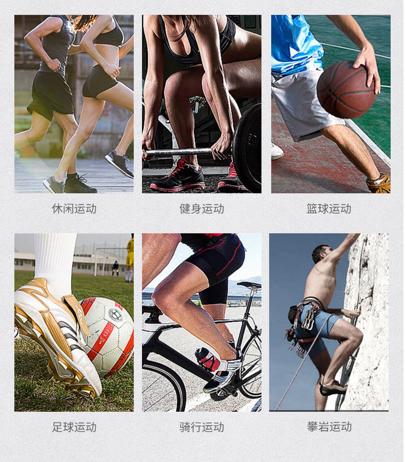 | Escenarios aplicables | Deportes para correr,Equipo de fitness,Fitness y cuerpo,Deportes de ciclismo,Deportes de hielo y nieve,Camping de senderismo,Deportes de baile,Deportes de voleibol de canasta de pie,Tenis de mesa,Otros deportes de pelota,Deportes de vadeo de natación |