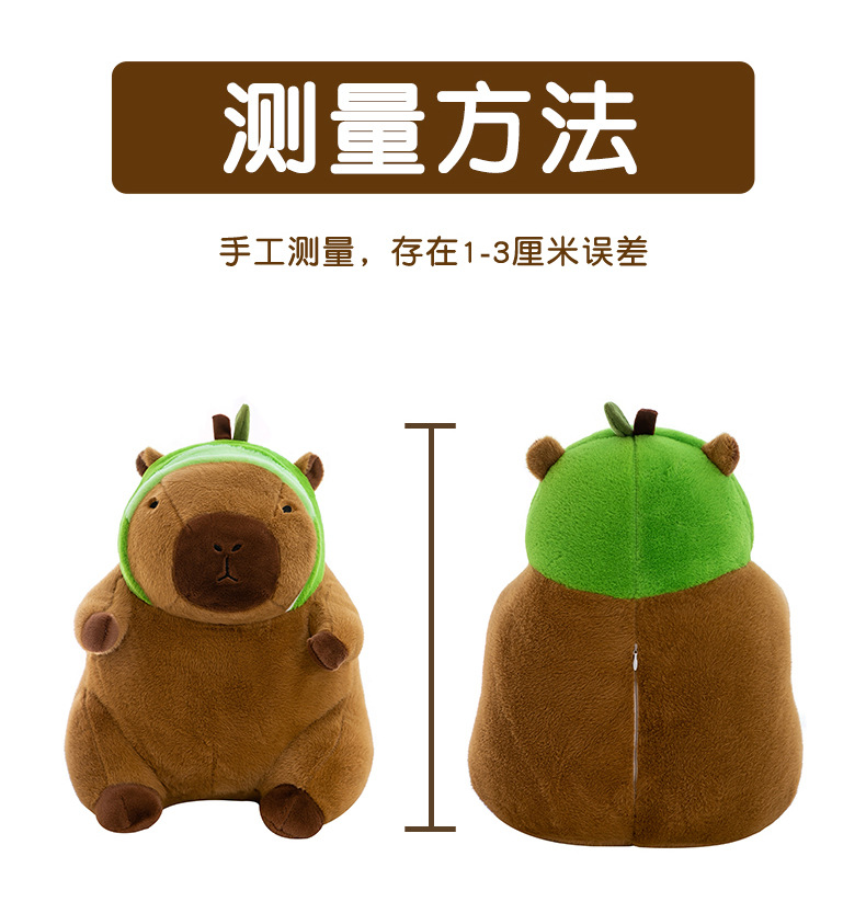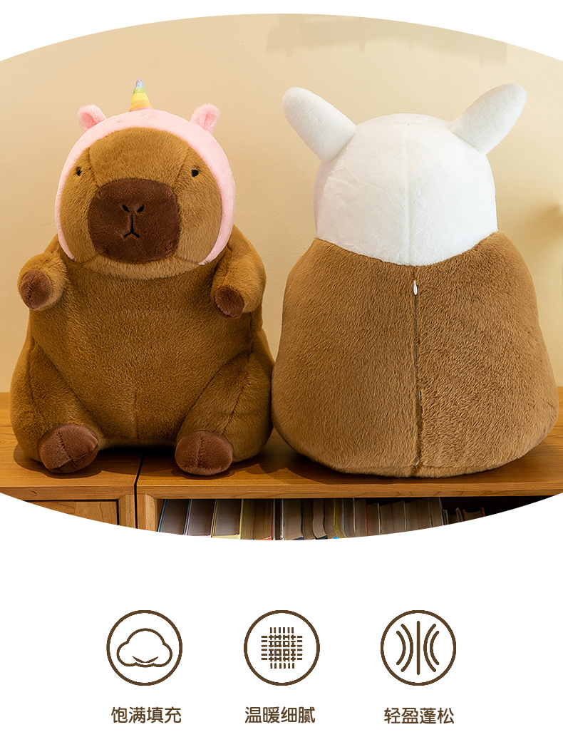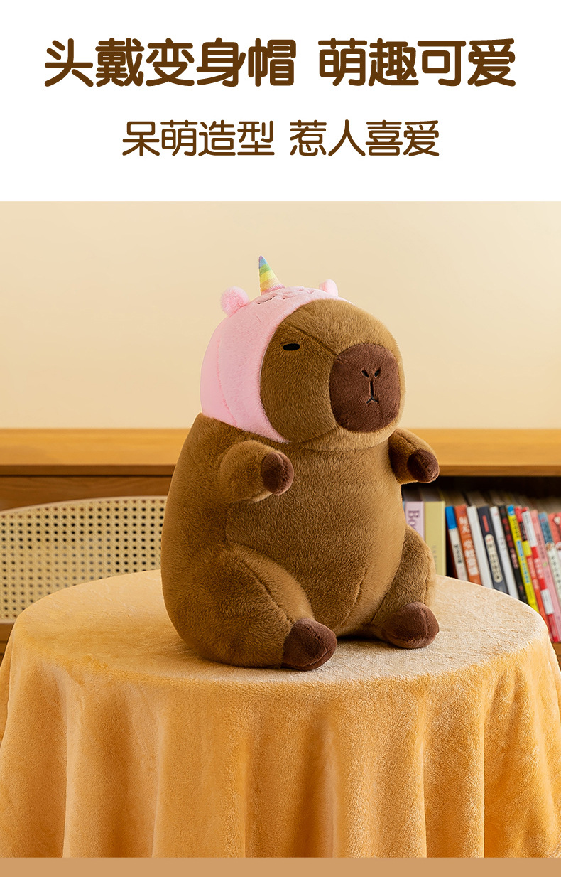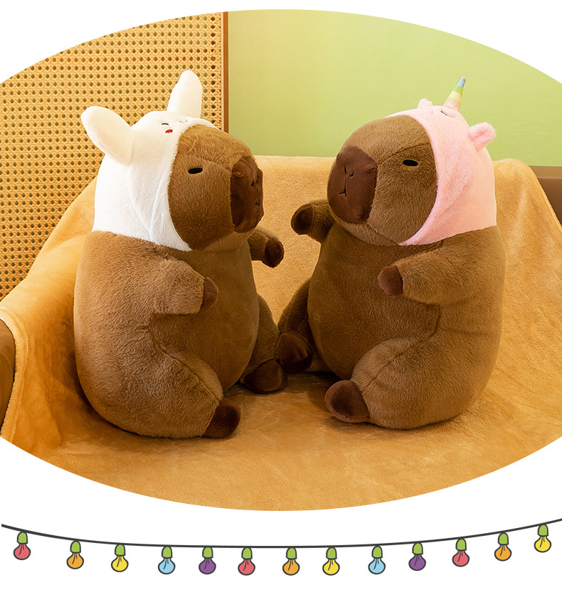 | Colores | Dinosaurio capibara,Conejo capibara,Carpincho de unicornio,Carpincho de aguacate,Carpincho de abeja,Ropa rosa capibara,Ropa marrón capibara,Mochila rosa capibara,Marrón mochila capibara,Bañador de capibara de graduación,Carpincho de graduación rojo,Anillo de natación capibara,Traje de baño hombre capibara,Traje de baño femenino capibara,Tortuga dorsal,Bufanda capibara,sombrero de cumpleaños carpincho |
