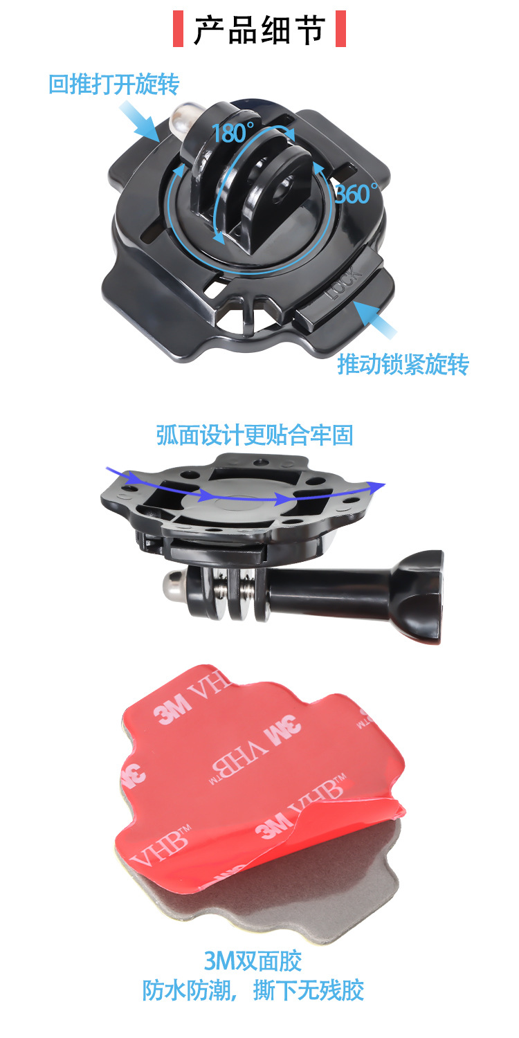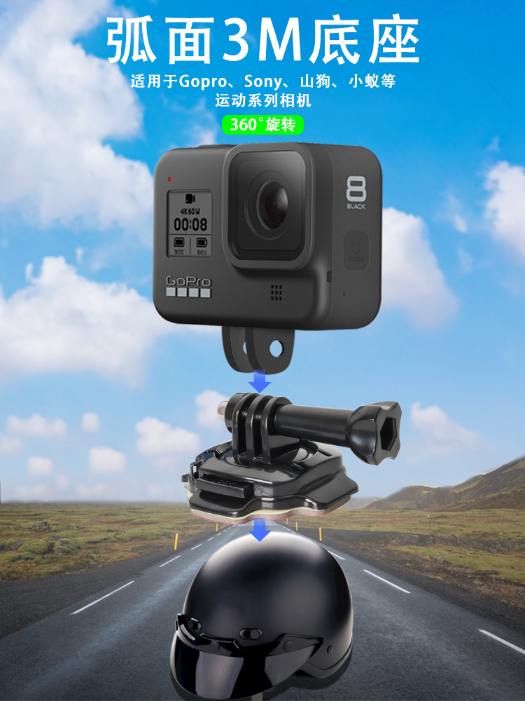 Accesorios Gopro 360 grados base de casco de rotación soporte de fijación arqueado con 3M adhesivo para cámara deportiva