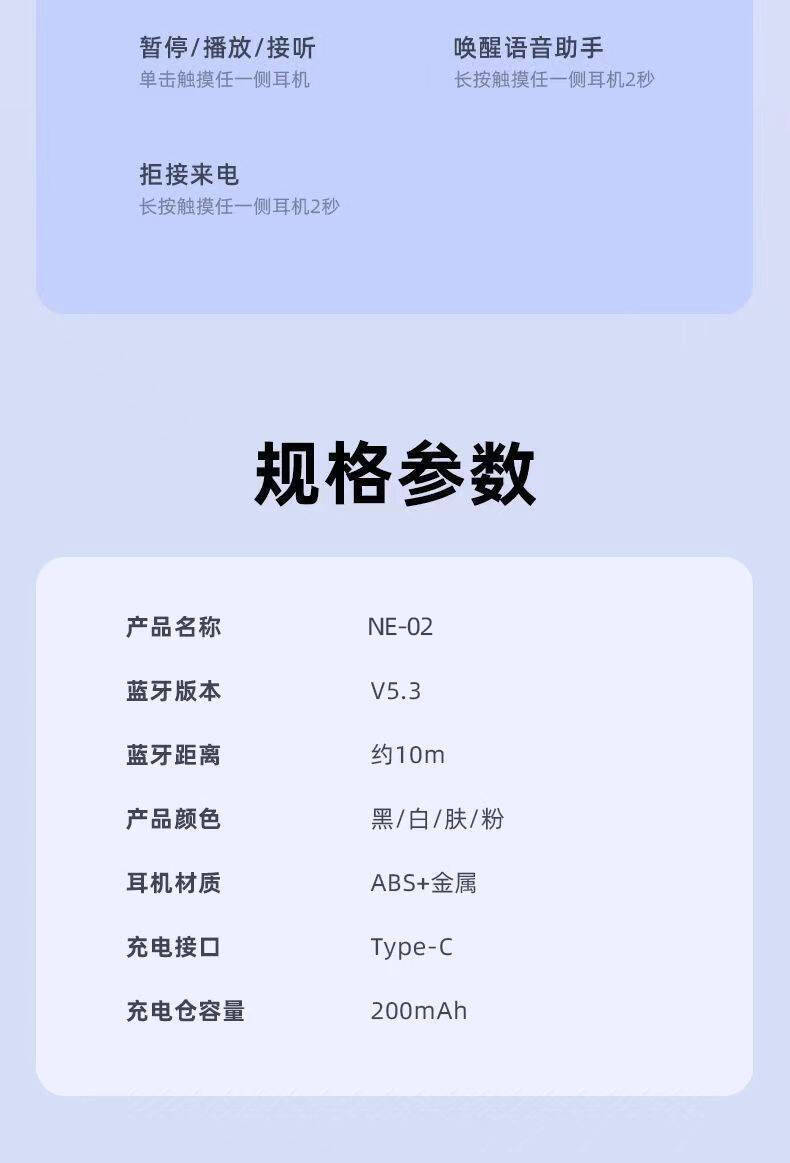 | Función | - 1, reducción de ruido, función de llamada, función nfc, control de voz, soporte musical, otros |