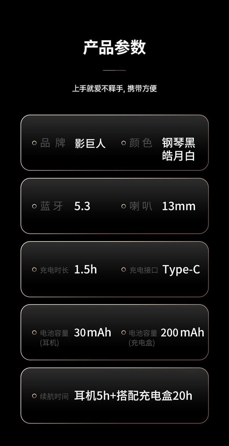 | Función | Impermeable,Reducción de ruido,Conducción ósea,Luz de respiración,Duración de la batería,Función de llamada,Control de voz,Música de apoyo,Patrones de sueño,Pantalla digital,Esports de baja latencia |