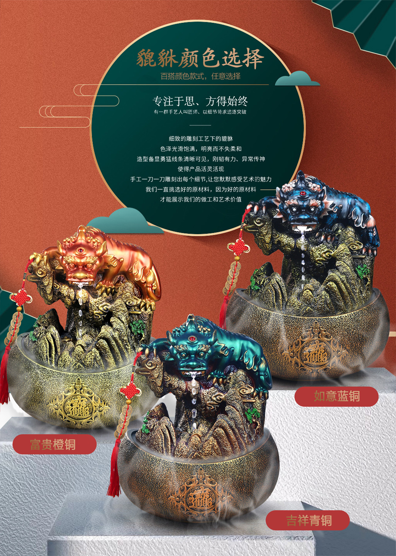 | Color | Rico cobre naranja - Buena suerte toma la delantera, bronce auspicioso - evergreen, Ruyi cobre azul - |