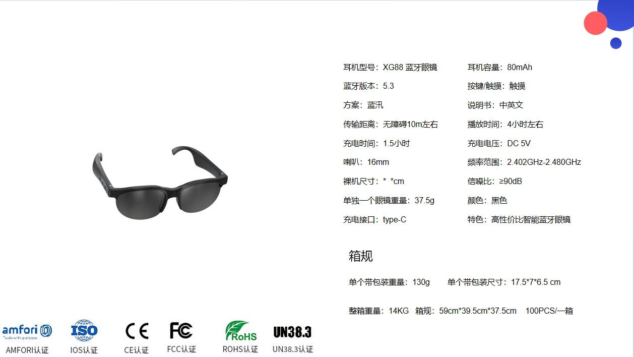 | Lista de embalaje | Manual del cable de carga del trapo para gafas Bluetooth |