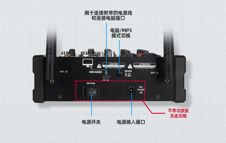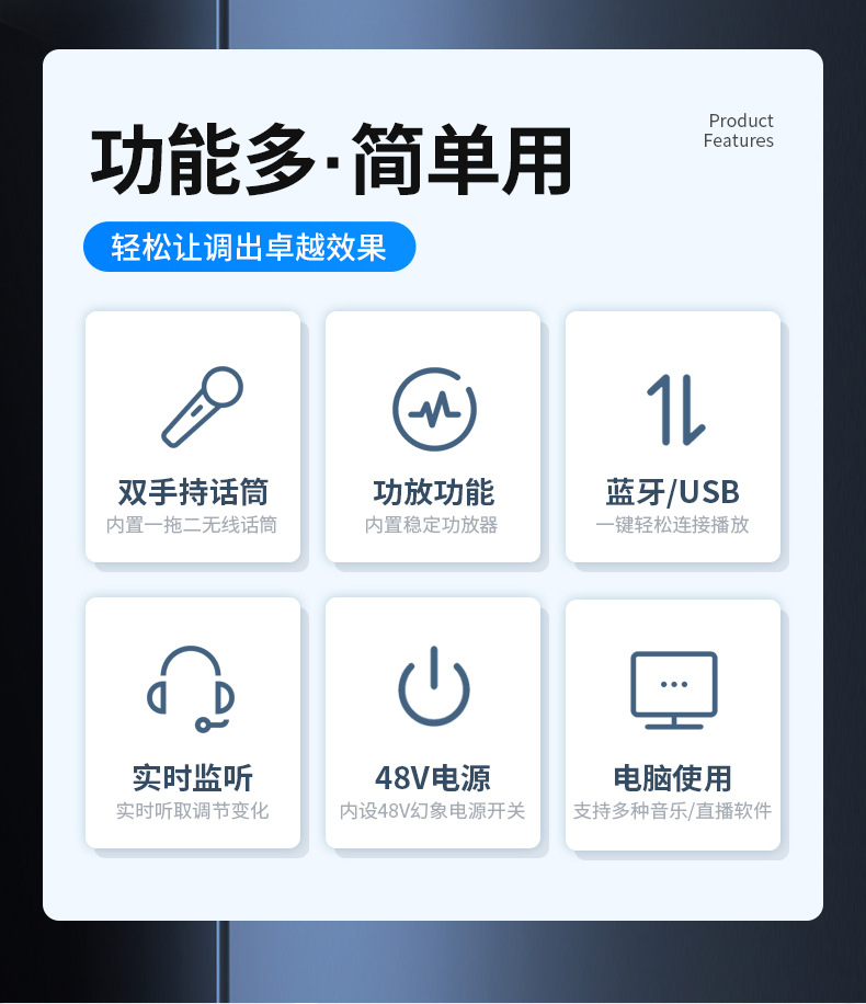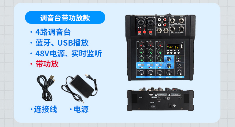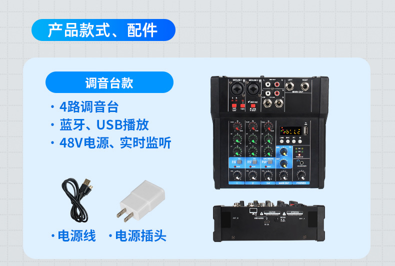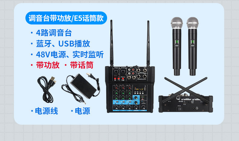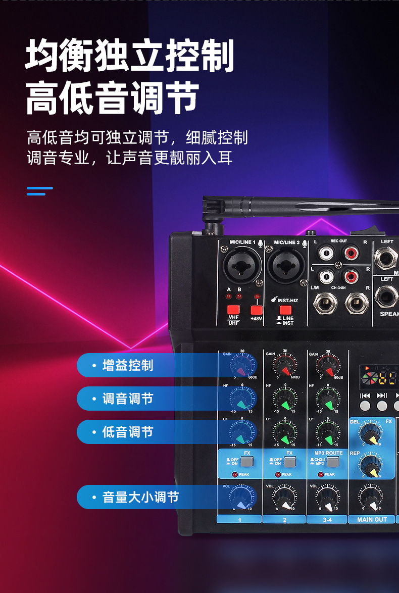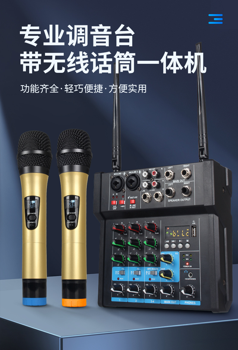 | Color | Mezclador puro (sin micrófono y amplificador),Mezclador de amplificador (con amplificador pero sin micrófono),Amplificador mezclador micrófono integrado (micrófono negro ordinario),Micrófono mezclador amplificador integrado (micrófono dorado ordinario),Micrófono mezclador amplificador integrado (micrófono de carga) |